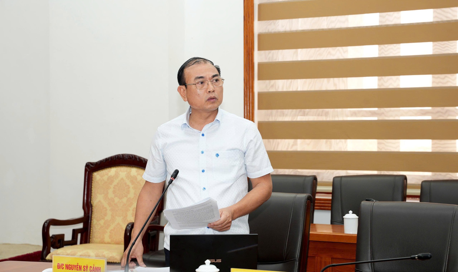 Đồng chí Nguyễn Sỹ Cảnh - Phó Chủ tịch UBND tỉnh phát biểu tại phiên họp.