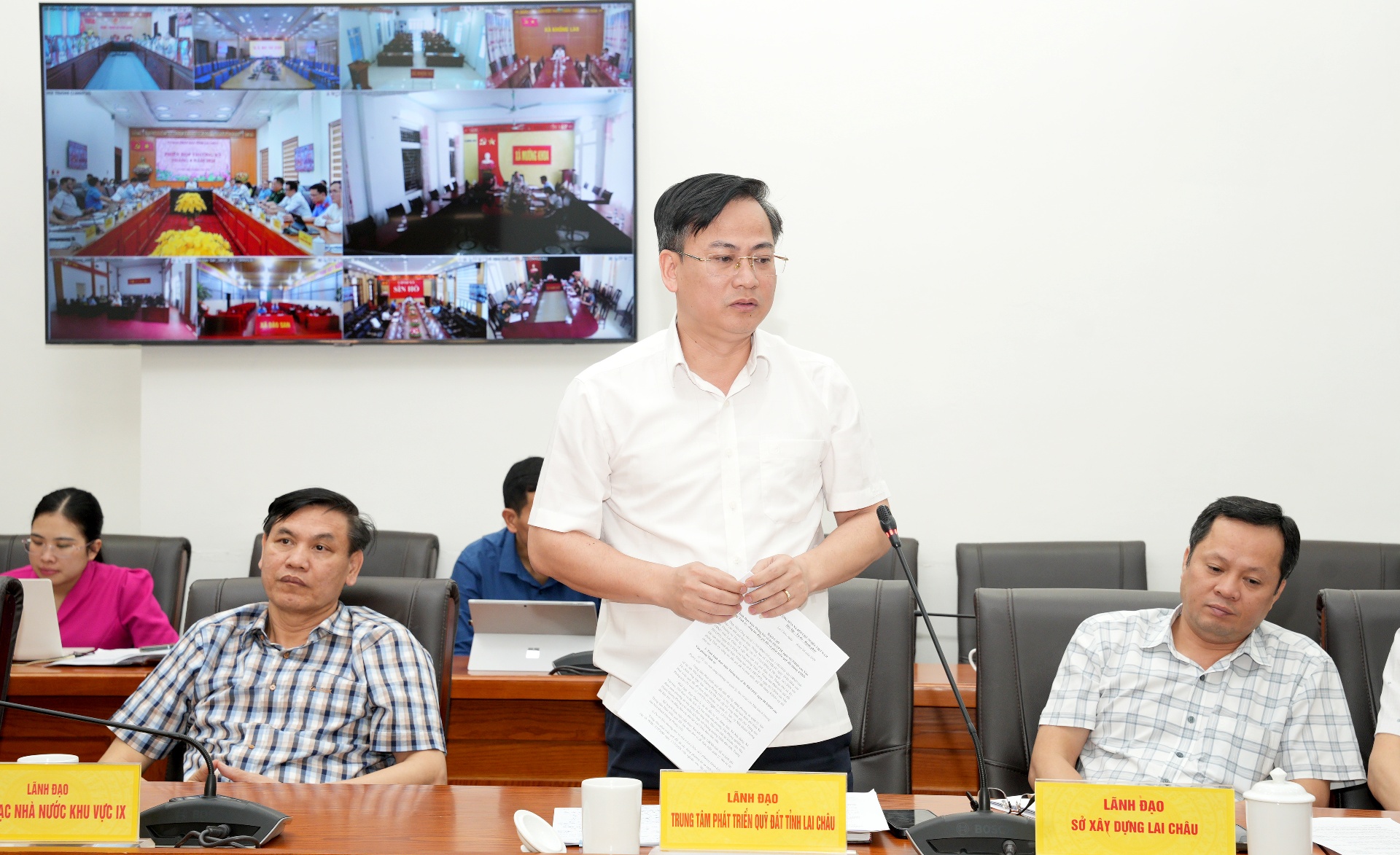 Lãnh đạo Trung tâm Phát triển Quỹ đất tỉnh phát biểu tại phiên họp.