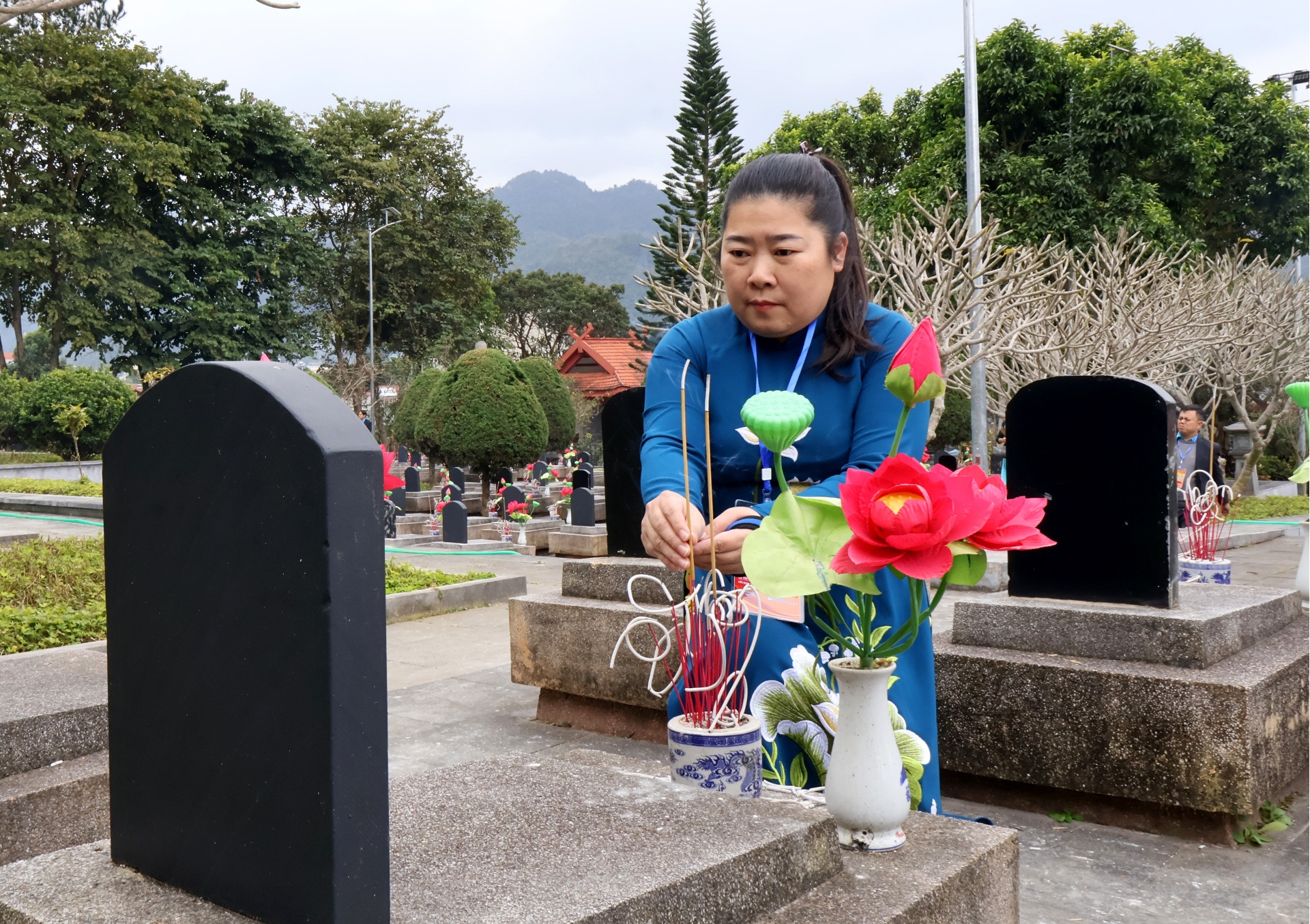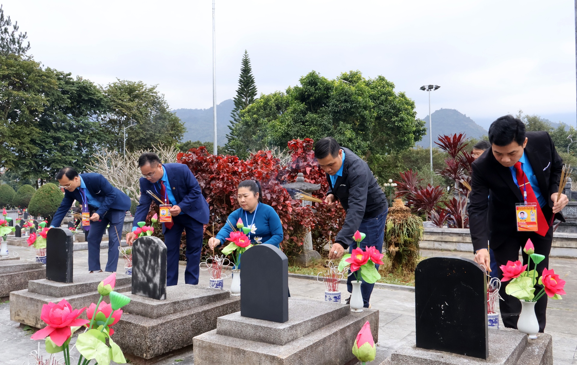 Đại biểu dự Đại hội dâng hương, dâng hoa tại Nghĩa trang liệt sĩ tỉnh trước khi bước vào phiên làm việc thứ nhất.