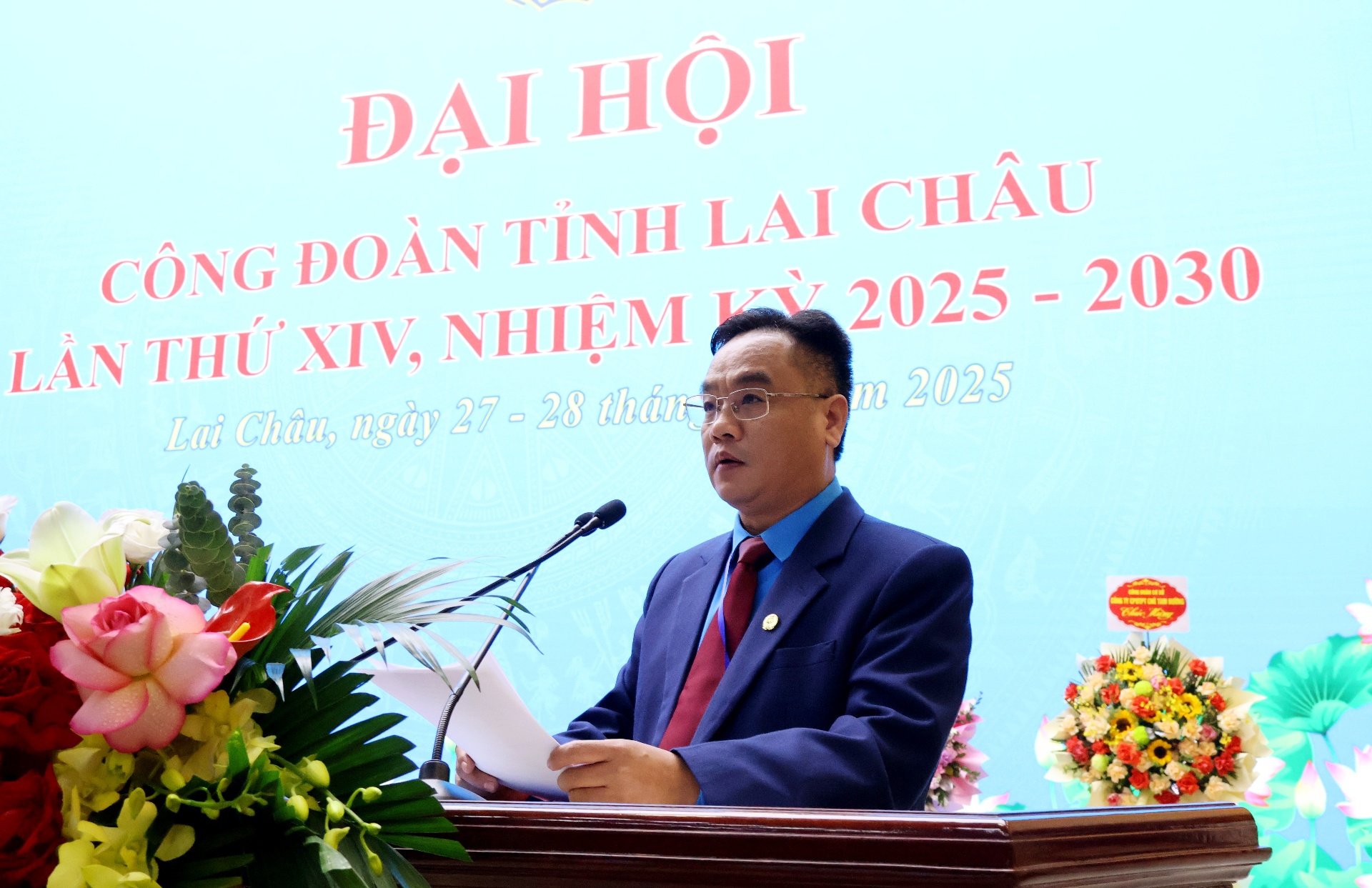 Quang cảnh phiên làm việc thứ nhất Đại hội Công đoàn tỉnh Lai Châu lần thứ XIV, nhiệm kỳ 2025-2030.