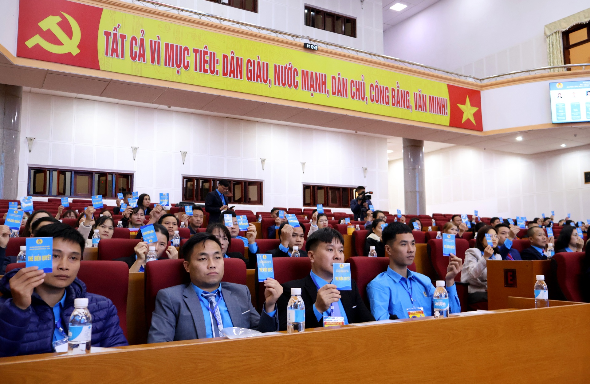 Đại biểu biểu quyết thông qua các nội dung tại đại hội.