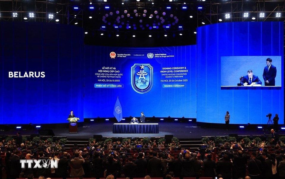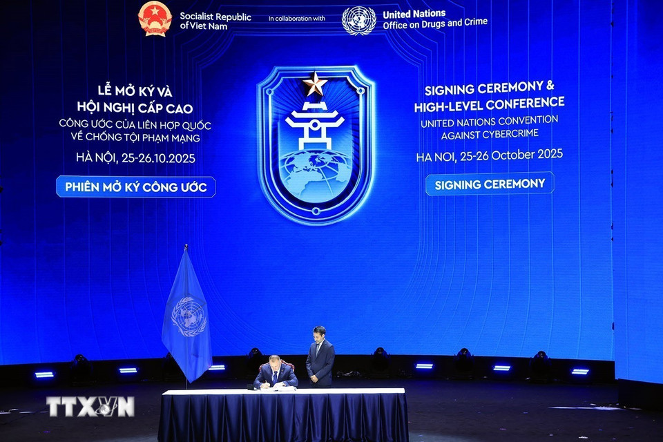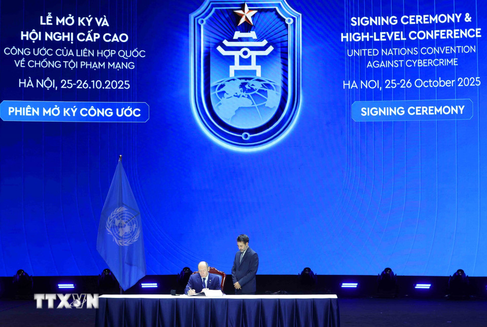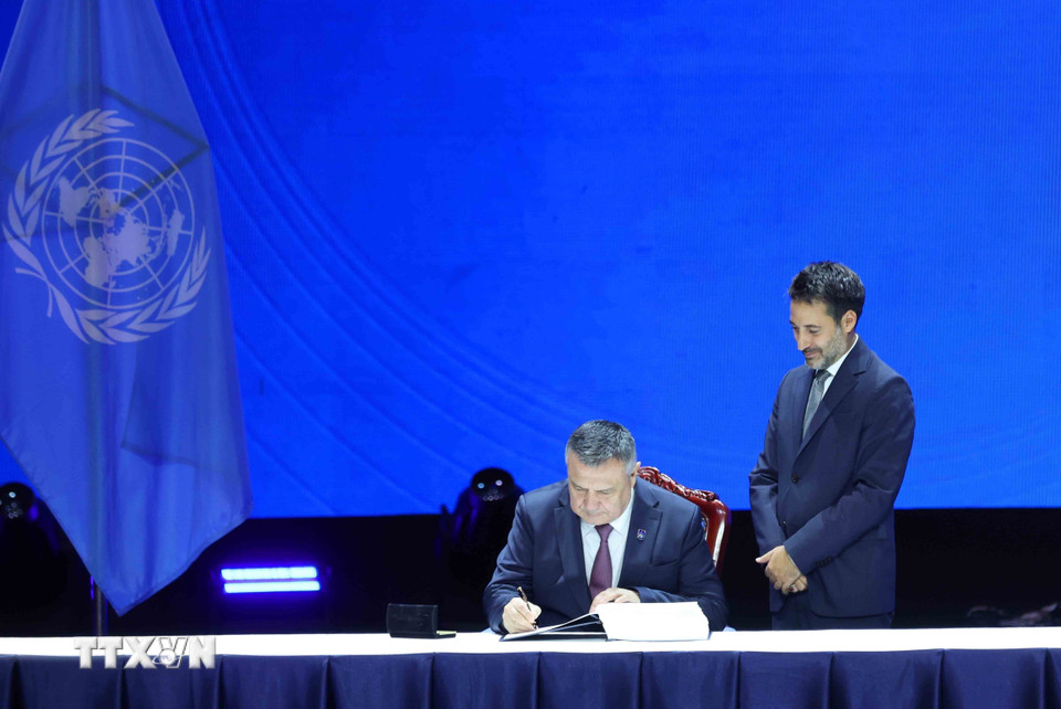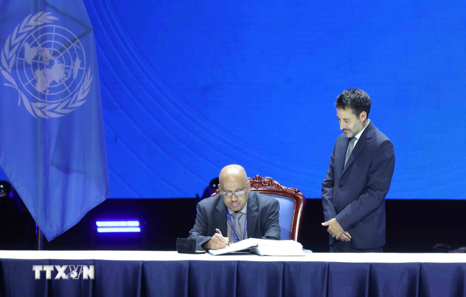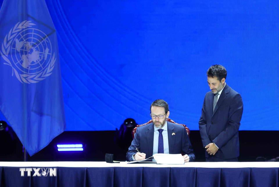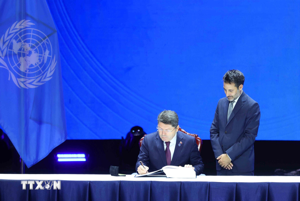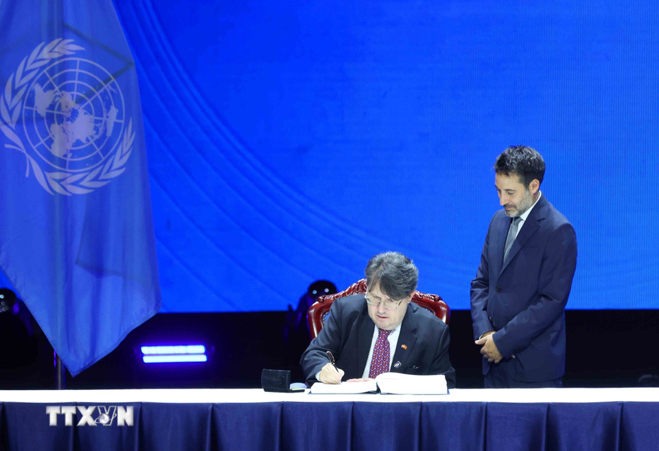 Đại diện Cộng hòa Áo ký Công ước của Liên hợp quốc về chống tội phạm mạng (Công ước Hà Nội). (Ảnh: Phương Hoa/TTXVN)