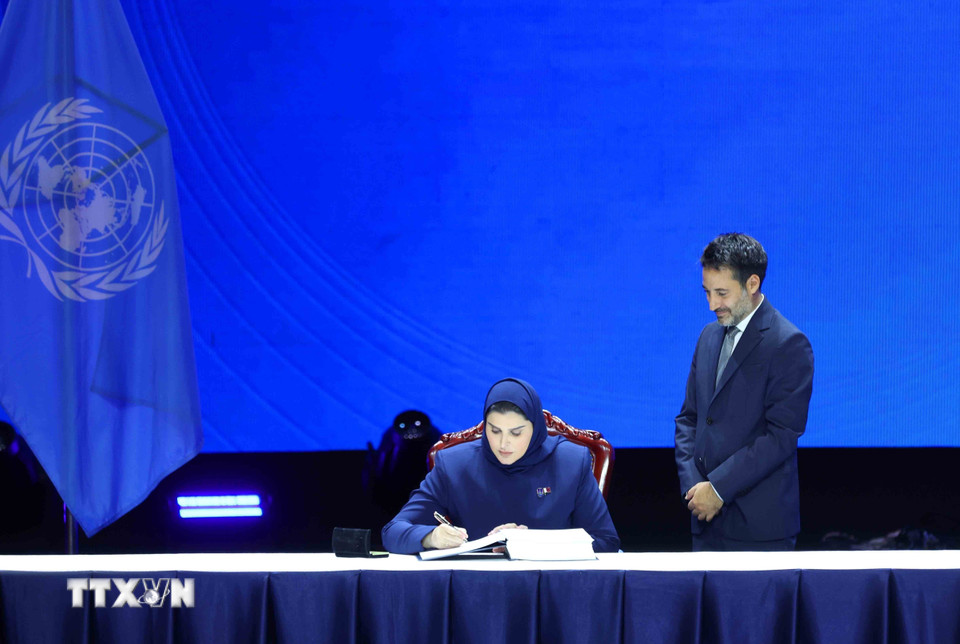Đại diện Nhà nước Qatar ký Công ước của Liên hợp quốc về chống tội phạm mạng. (Ảnh: Phương Hoa/TTXVN)