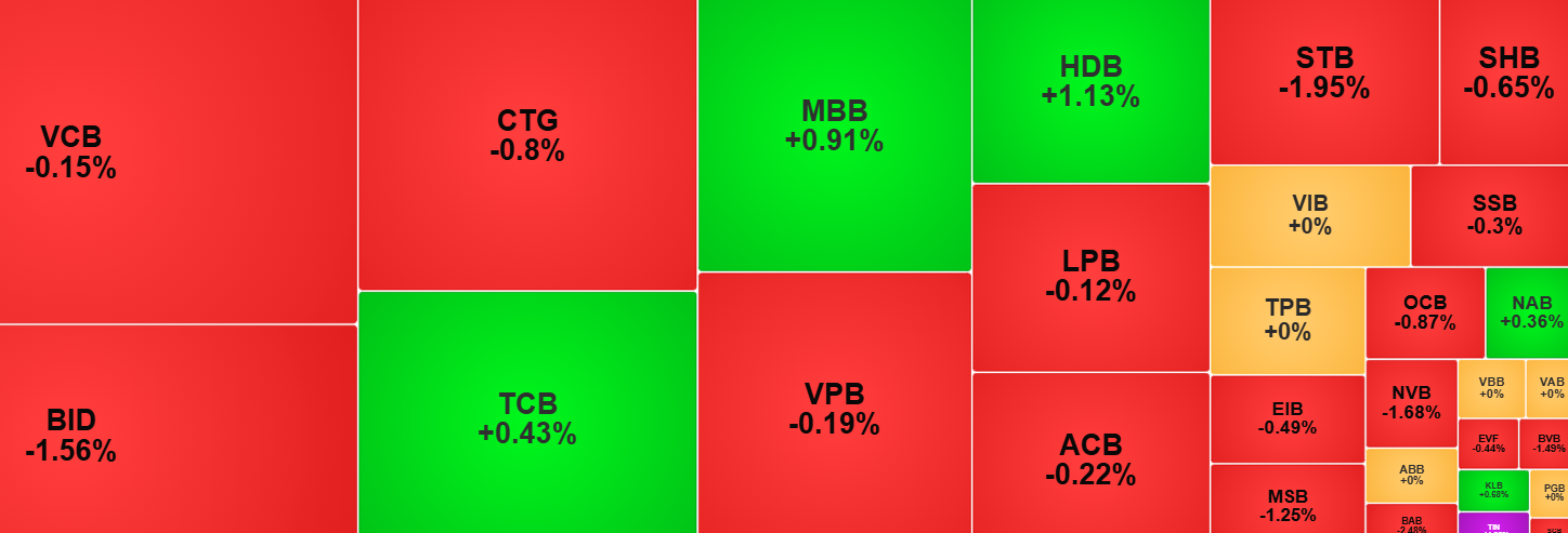 Ở nhóm ngân hàng, MBB, HDB, TCB góp phần giúp thị trường không giảm điểm thêm trong khi BID, CTG, STB nằm trong nhóm lấy đi nhiều điểm số nhất.