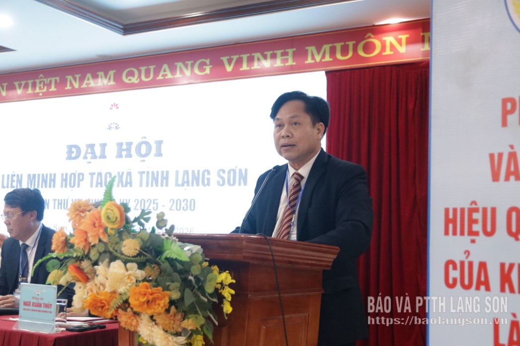 Lãnh đạo Liên minh HTX tỉnh phát biểu tại đại hội
