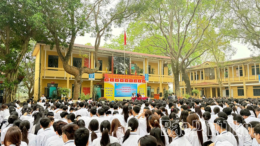 Học sinh Trường THPT Quang Hà tham gia hỏi đáp pháp luật.