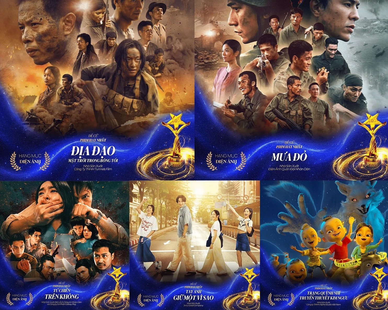Hạng mục điện ảnh là sự hiện diện của nhiều bộ phim có doanh thu cao trong năm nay, gồm Địa đạo: Mặt trời trong bóng tối, Thám tử Kiên: Kỳ án không đầu, Nụ hôn bạc tỷ, Tử chiến trên không, Mưa đỏ....
