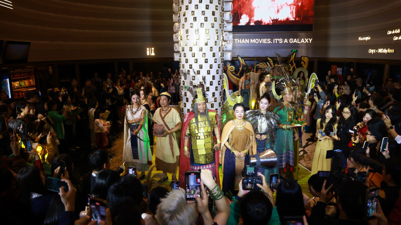 Lễ ra mắt phim "Huyền tình Dạ Trạch" diễn ra tại rạp Galaxy Cine X (Hà Nội) trong không gian được tái hiện gắn với thời Hùng Vương dựng nước.