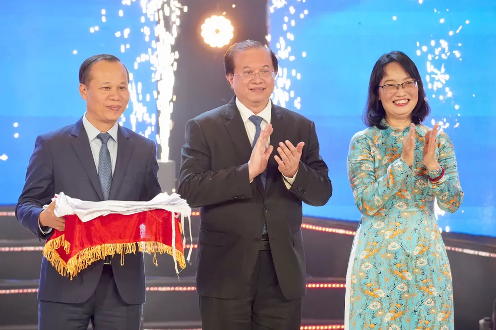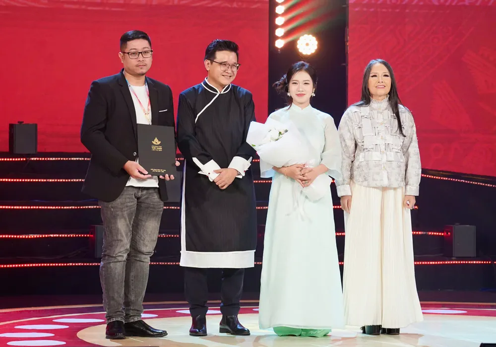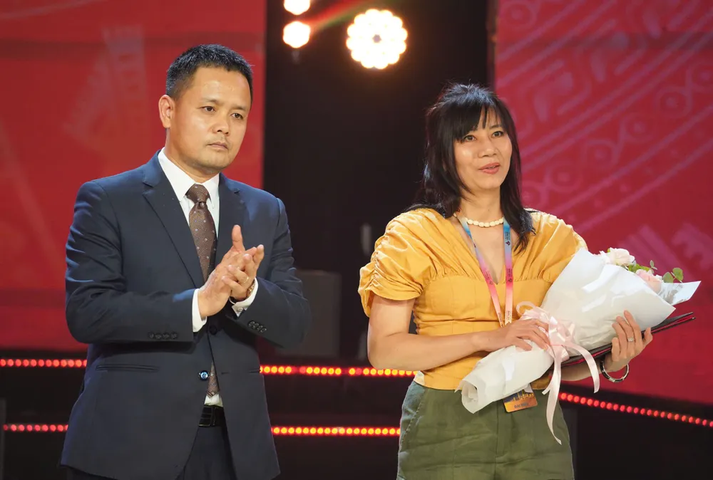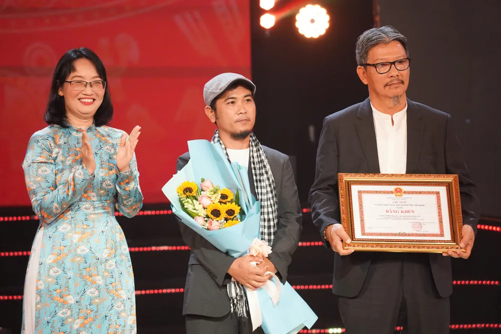 Bà Trần Thị Diệu Thúy, Phó Chủ tịch UBND TP.HCM trao bằng khen dành cho phim có bối cảnh quay tại TP.HCM cho phim "Địa đạo: Mặt trời trong bóng tối" của đạo diễn Bùi Thạc Chuyên.