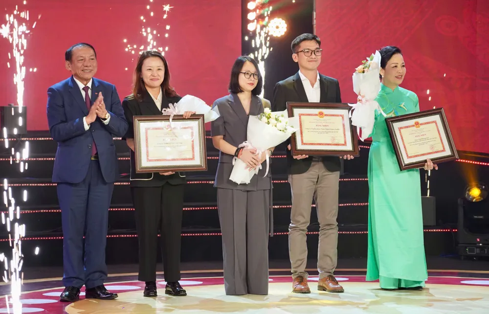 Bộ trưởng Bộ Văn hóa, Thể thao và Du lịch Nguyễn Văn Hùng trao bằng khen cho các cá nhân, tập thể có đóng góp cho nền điện ảnh nước nhà.