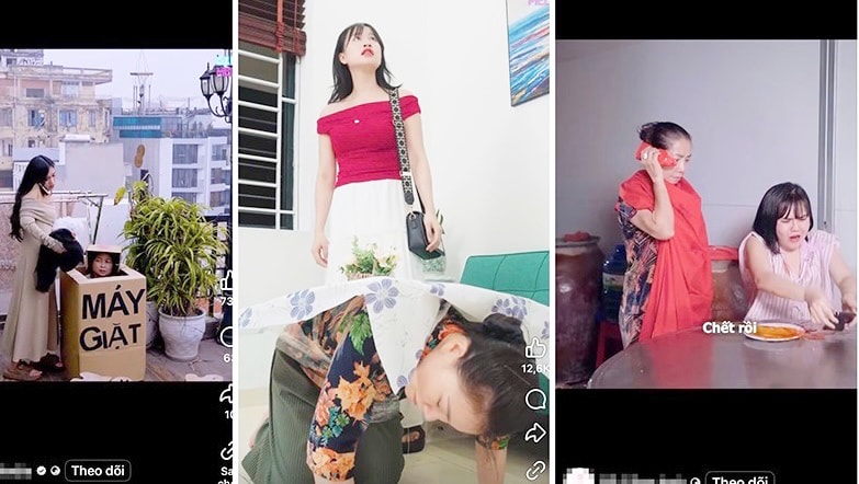 Những tựa đề như: “Mẹ chồng giả làm cái bàn thử lòng con dâu”, “Giả chết để thử lòng người yêu”, “Ôsin bỗng hóa em gái gán nhà tiểu thư để trả nợ”… không khó để bắt gặp trên mạng xã hội TikTok hay Facebook. Nhiều câu chuyện bị đẩy đến mức hoang đường, phản cảm, biến mâu thuẫn đời thường thành trò đùa, làm lệch lạc góc nhìn của người xem về tình thân, đạo đức và ứng xử xã hội. Thậm chí, có những cảnh quay gượng gạo đến mức phi lý như mẹ chồng giả làm chai tương ớt, giả làm bức tranh, giả làm máy giặt… được sử dụng chỉ để gây tò mò, lấy tương tác.