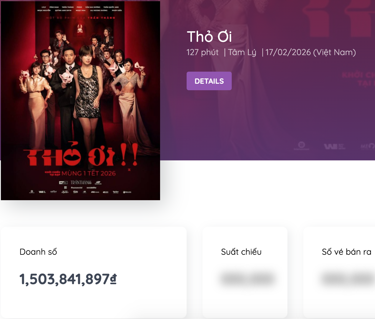 Theo thống kê của Box Office Vietnam (đơn vị quan sát phòng vé độc lập), tính đến sáng 13/2, "Thỏ ơi" đang tạm dẫn đầu khi thu về hơn 1,5 tỷ đồng sau hơn 1 ngày mở bán vé sớm. Xếp liền sau là "Nhà ba tôi một phòng" khi mang về hơn 796 triệu đồng.