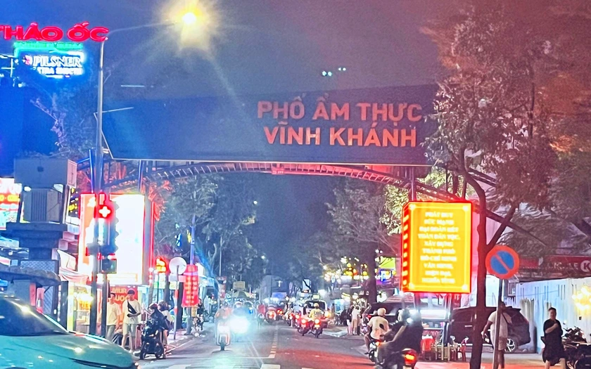Trên con đường kéo dài khoảng 1 km có nhiều con hẻm của viên ngọc ẩn đang tỏa sáng - phố ẩm thực Vĩnh Khánh (hiện thuộc phường Khánh Hội), Thành phố Hồ Chí Minh - quy tụ hàng chục quán ăn nhộn nhịp. Ảnh: Vietnam Travel