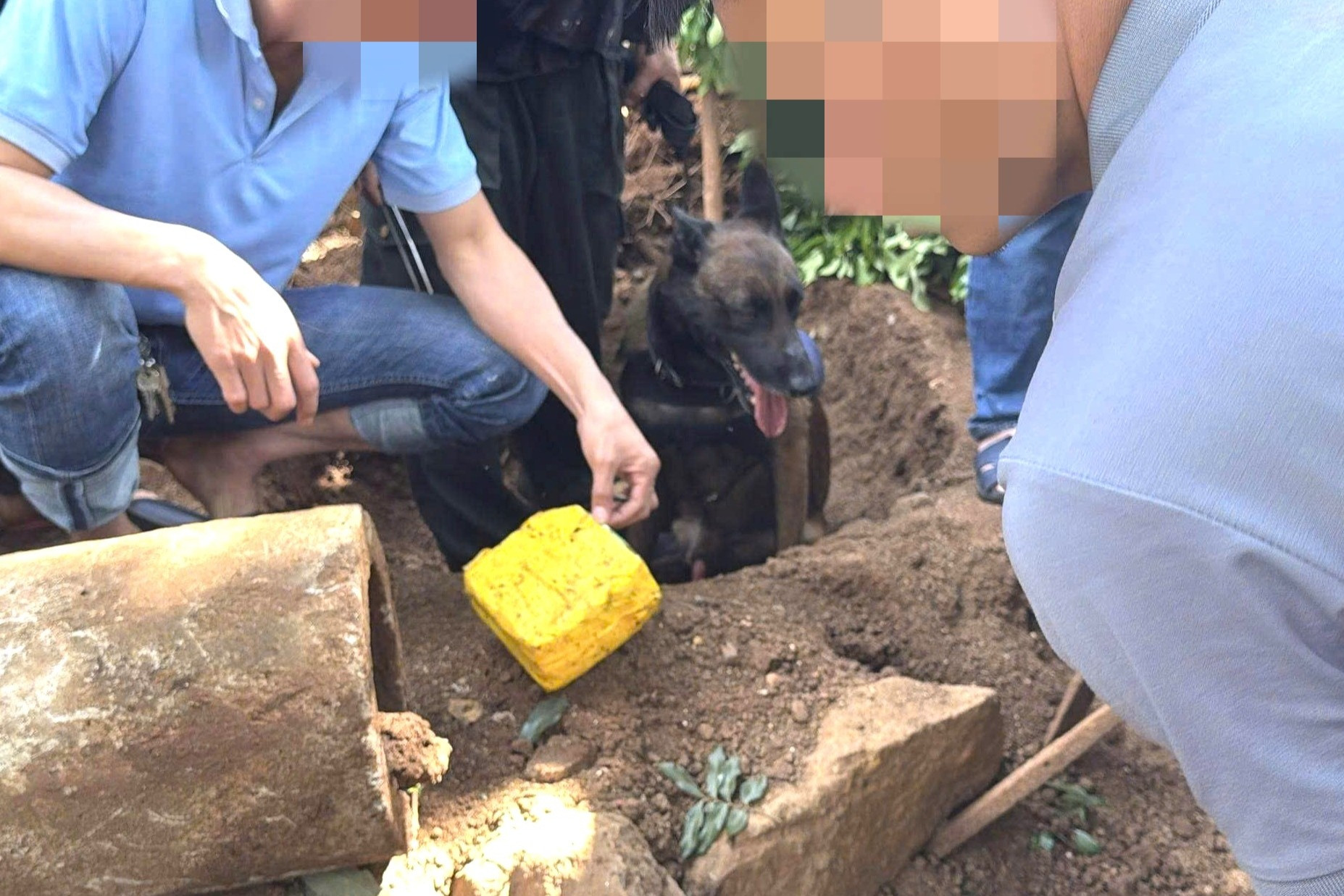 ‘Khi bị vây bắt, một số đối tượng chống đối, không hợp tác, buộc đơn vị phải phối hợp với Phòng Cảnh sát cơ động, huy động chó nghiệp vụ và 2 máy xúc để đào xới, tìm kiếm tang vật’, Thượng tá Hùng cho hay.