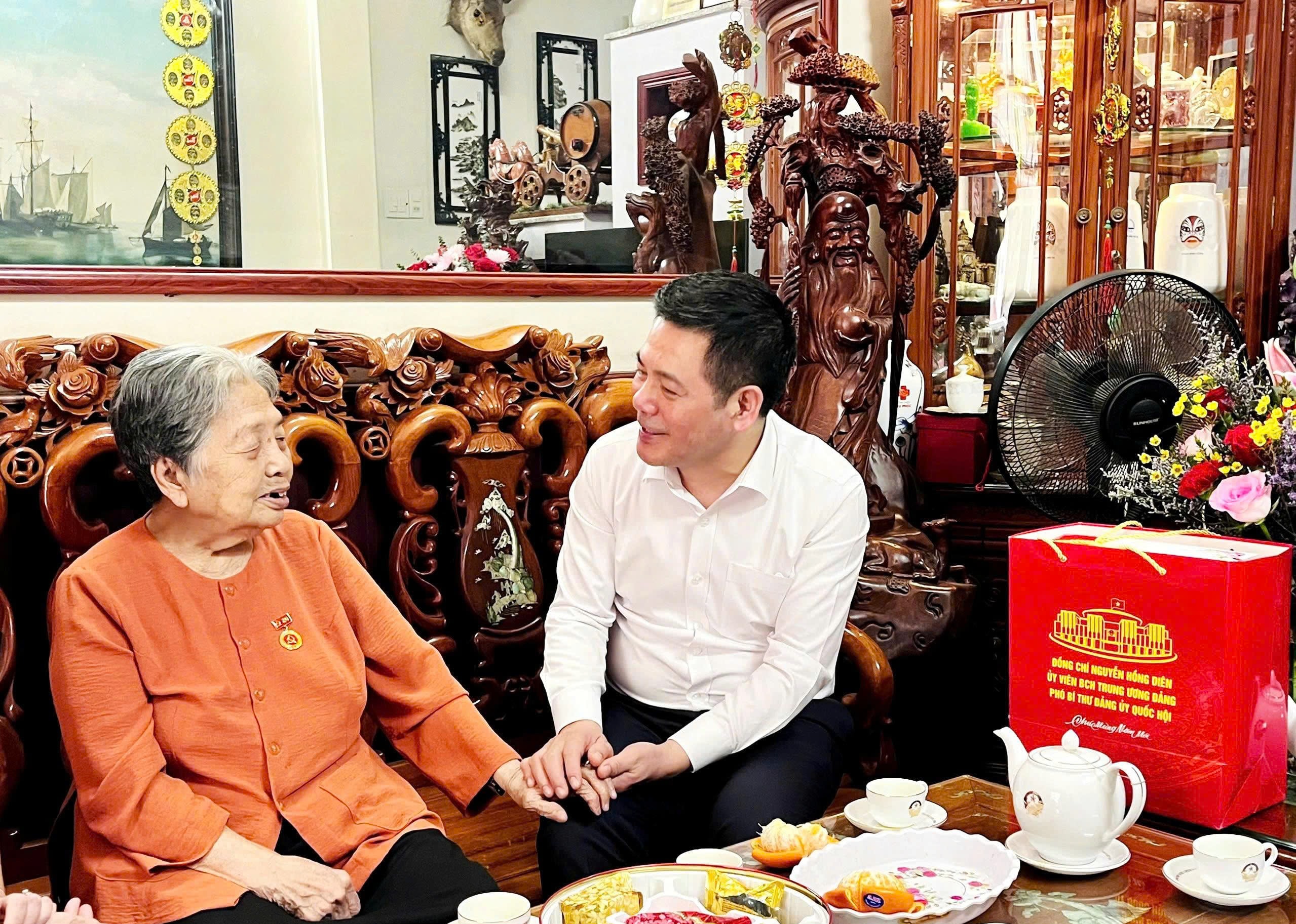 Phó Bí thư Đảng ủy Quốc hội Nguyễn Hồng Diên thăm cán bộ lão thành cách mạng Trịnh Thị Minh Tân