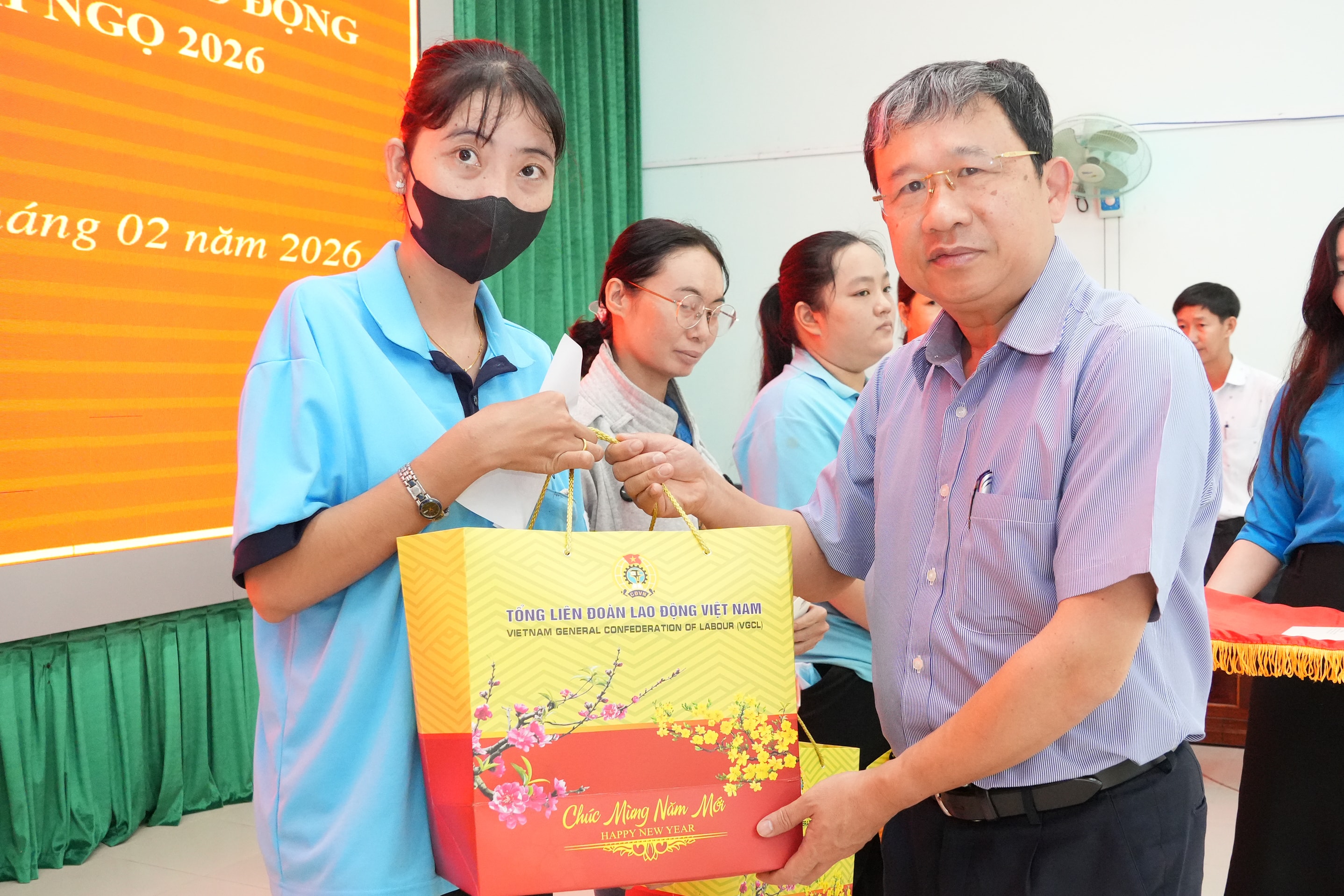 Phó Bí thư Đảng ủy Quốc hội Vũ Hải Hà trao quà tặng công nhân lao động trên địa bàn . Ảnh: Thạc Hiếu