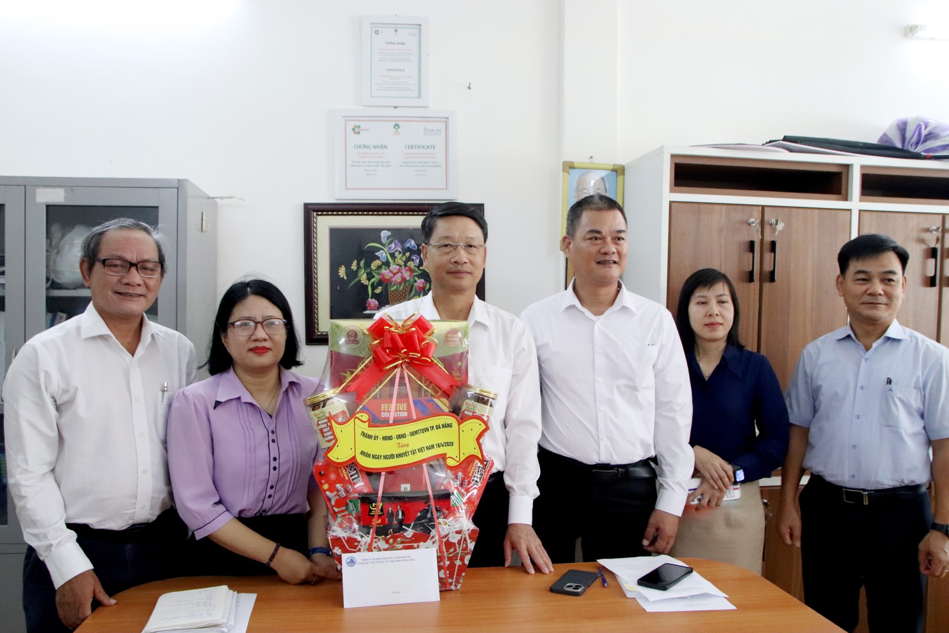 Phó Bí thư Thành ủy Ngô Xuân Thắng tặng quà cho đại diện Trung tâm Điều dưỡng người tâm thần Đà Nẵng. Ảnh: TRỌNG HUY