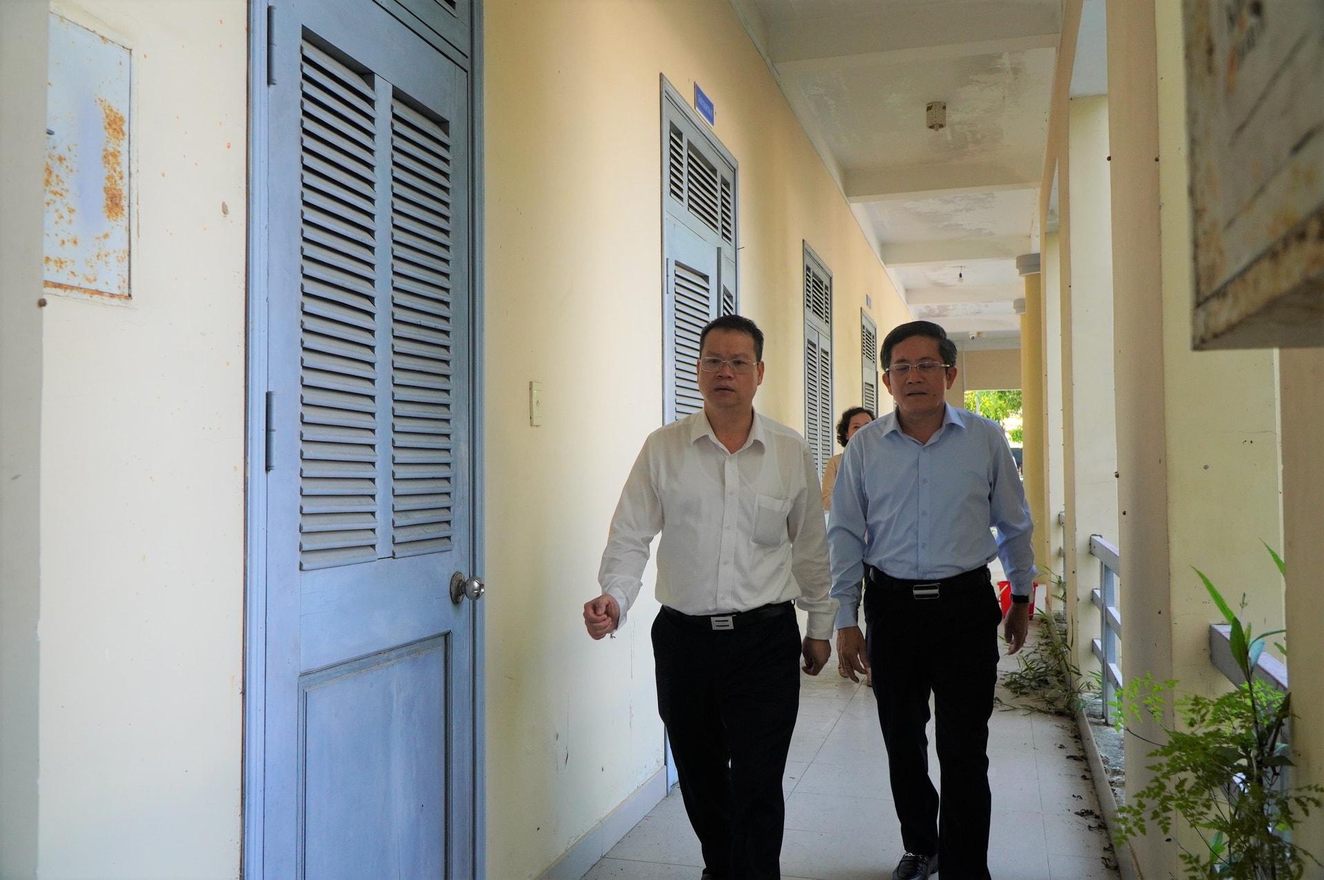 Phó Bí thư Thành ủy Nguyễn Mạnh Hùng (bên trái) và Phó Chủ tịch UBND thành phố Trần Nam Hưng kiểm tra trụ sở Sở Nội vụ tỉnh Quảng Nam (cũ). Ảnh: VINH ANH