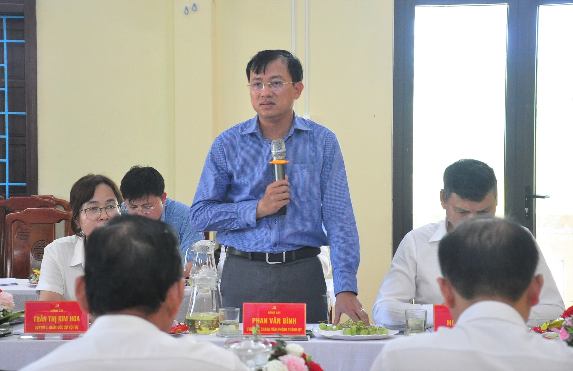 Chánh Văn phòng Thành ủy Phan Văn Bình phát biểu tại buổi làm việc. Ảnh: VINH ANH