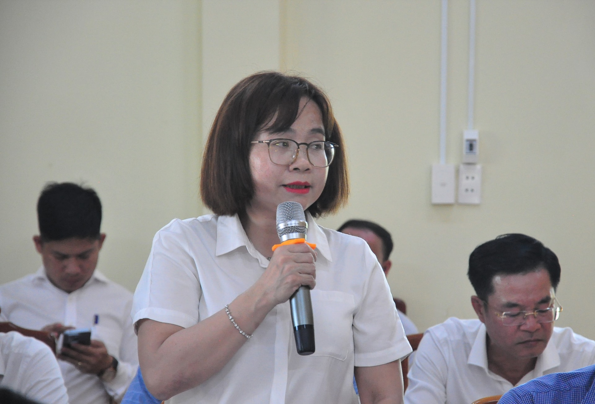 Giám đốc Sở Nội vụ Trần Thị Kim Hoa phát biểu tại buổi làm việc. Ảnh: VINH ANH