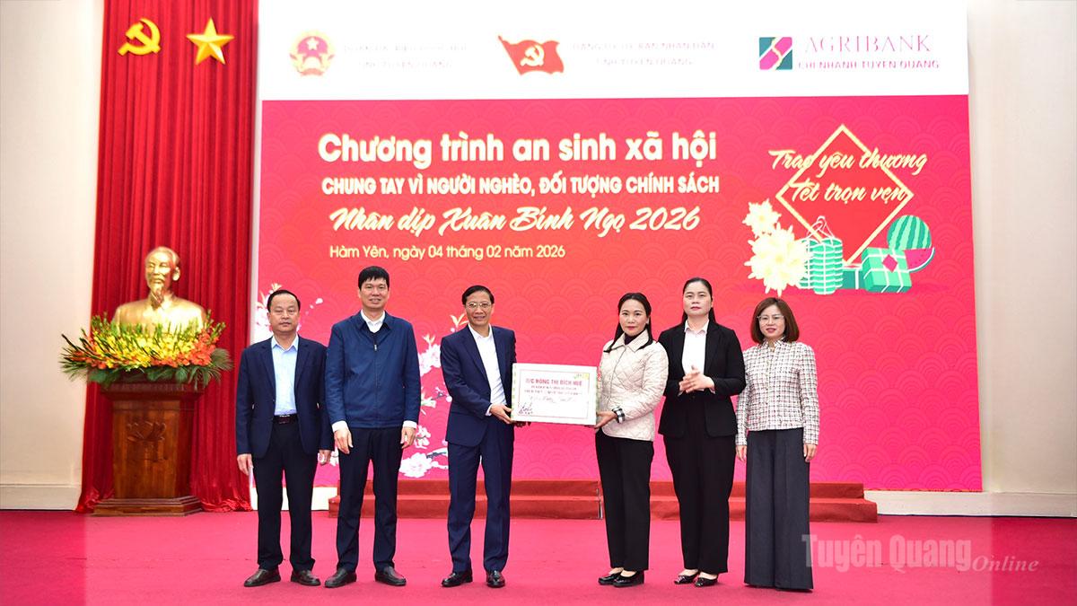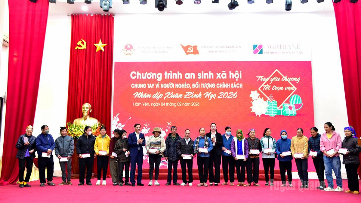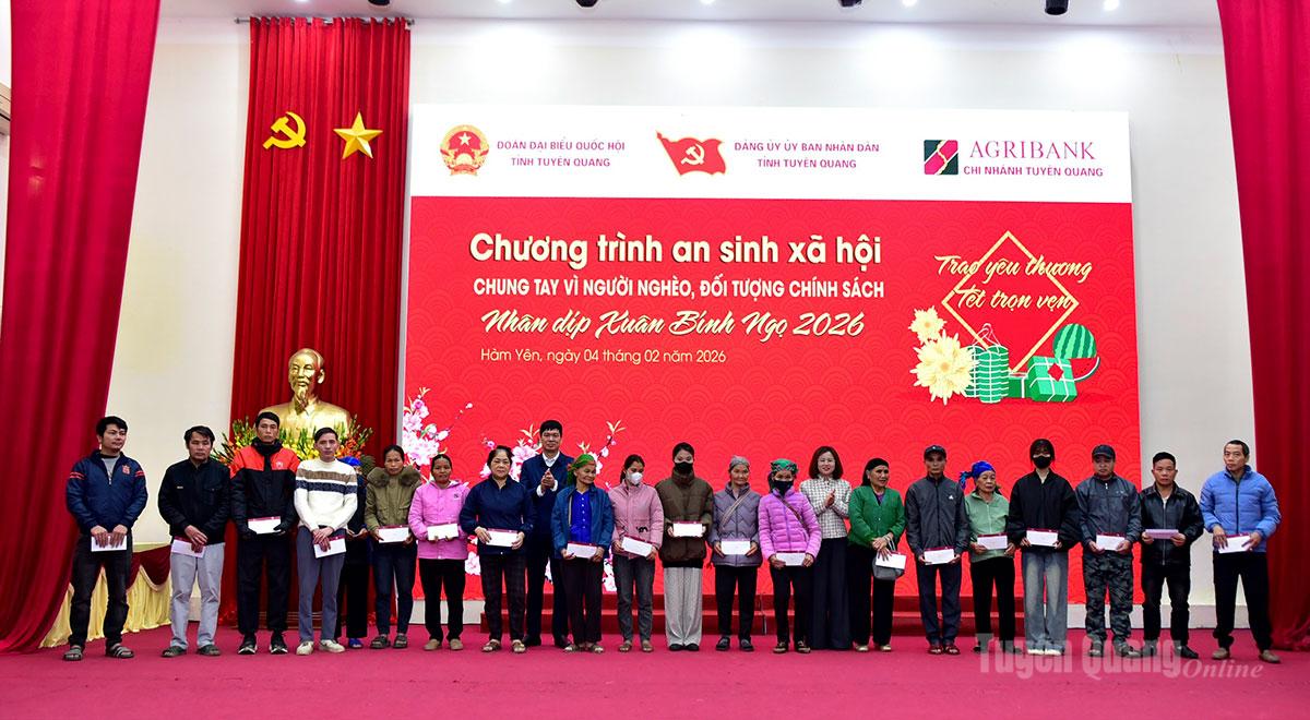 Tại chương trình, các đồng chí lãnh đạo đã trao tặng 70 suất quà Tết cho các gia đình chính sách, hộ nghèo, hộ có hoàn cảnh khó khăn trên địa bàn xã Hàm Yên. Những phần quà Tết được trao tặng thể hiện tình cảm, sự quan tâm sâu sắc của lãnh đạo tỉnh, cấp ủy, chính quyền, các doanh nghiệp kịp thời chia sẻ, động viên và chăm lo những người có hoàn cảnh khó khăn được đón Tết đầm ấm, an vui, hạnh phúc.