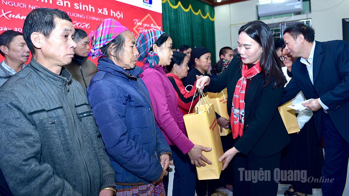 Đồng chí Phó Bí thư Thường trực Đảng ủy UBND tỉnh Nông Thị Bích Huệ và các đơn vị đồng hành đã trao 94 suất quà Tết tặng người cao tuổi, người có công với cách mạng, gia đình chính sách, hộ nghèo, hộ có hoàn cảnh khó khăn trên địa bàn các xã. Những phần quà Tết được trao tặng thể hiện tình cảm, sự sẻ chia, quan tâm sâu sắc của lãnh đạo tỉnh, cấp ủy, chính quyền, các doanh nghiệp tri ân người có công với cách mạng; sự quan tâm, chia sẻ với người cao tuổi, người nghèo, bà con vùng sâu, vùng xa, vùng có điều kiện còn khó khăn.