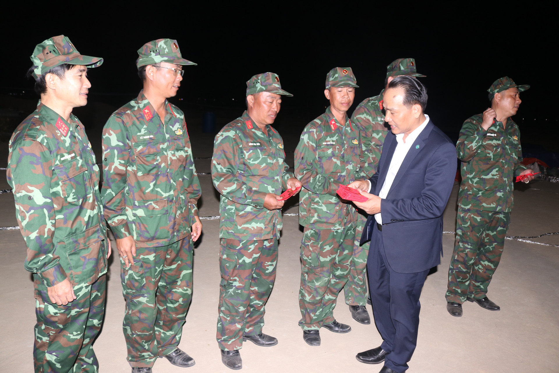 Tại Khu du lịch Cồn Bắp, điểm bắn pháo hoa số 4, Phó Bí thư Thường trực Thành ủy Nguyễn Đình Vĩnh cùng đoàn công tác đã thăm hỏi, động viên và chúc Tết cán bộ, chiến sĩ thuộc Bộ Chỉ huy Quân sự thành phố cùng các lực lượng đang làm nhiệm vụ tại đây.