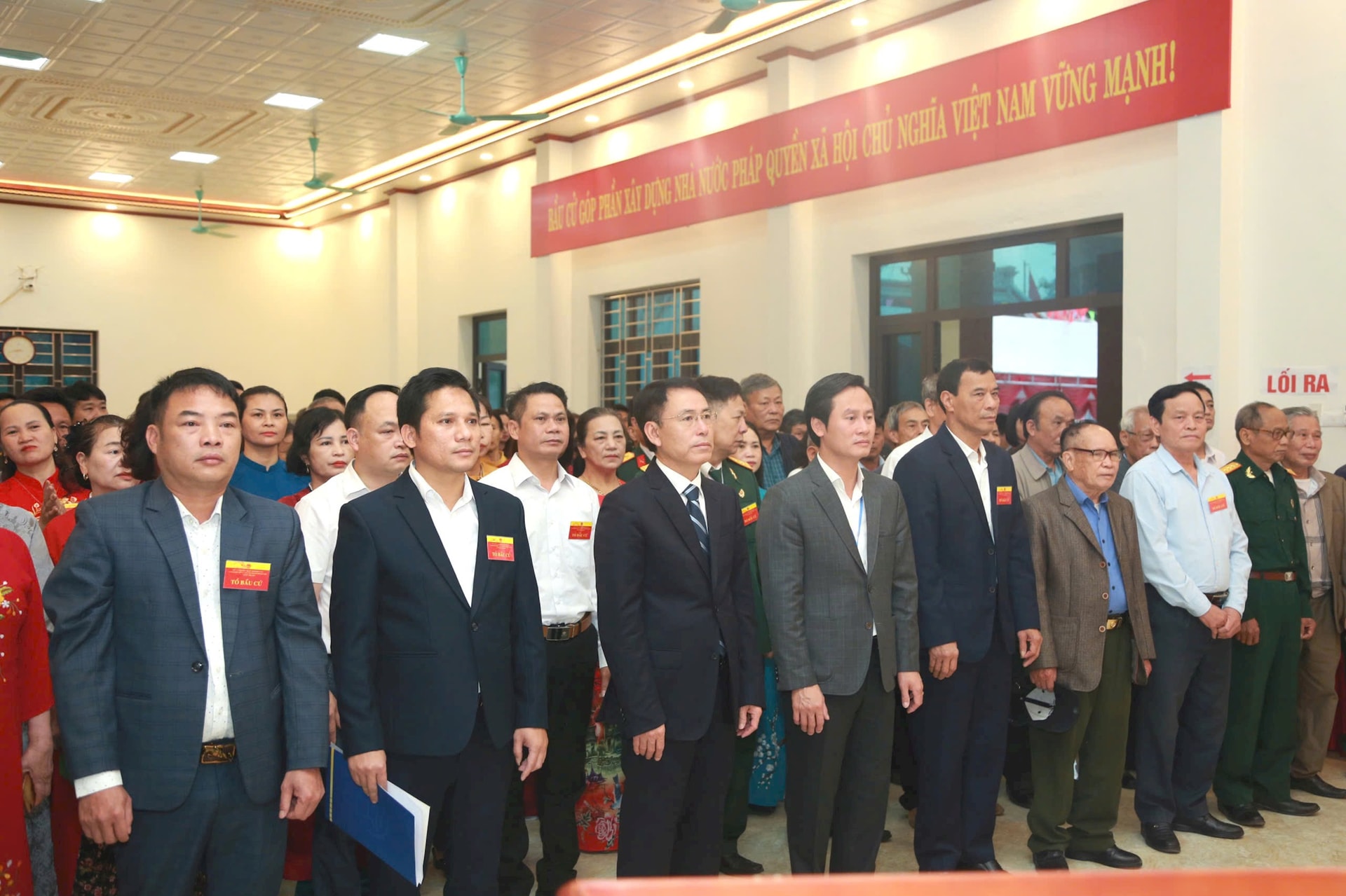 Ngay sau lễ khai mạc, đông đảo cử tri thôn Khê Nữ đã tới bỏ phiếu, thực hiện quyền công dân. Ảnh: Phạm Hùng