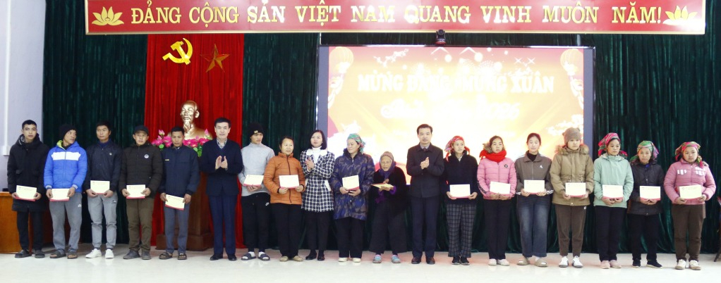 Nhân dịp này, đoàn thăm, động viên và trao tặng 16 suất quà của Tỉnh ủy - HĐND - UBND - Ủy ban MTTQ tỉnh cho các hộ nghèo có hoàn cảnh khó khăn trên địa bàn xã; tặng quà chúc tết xã.
