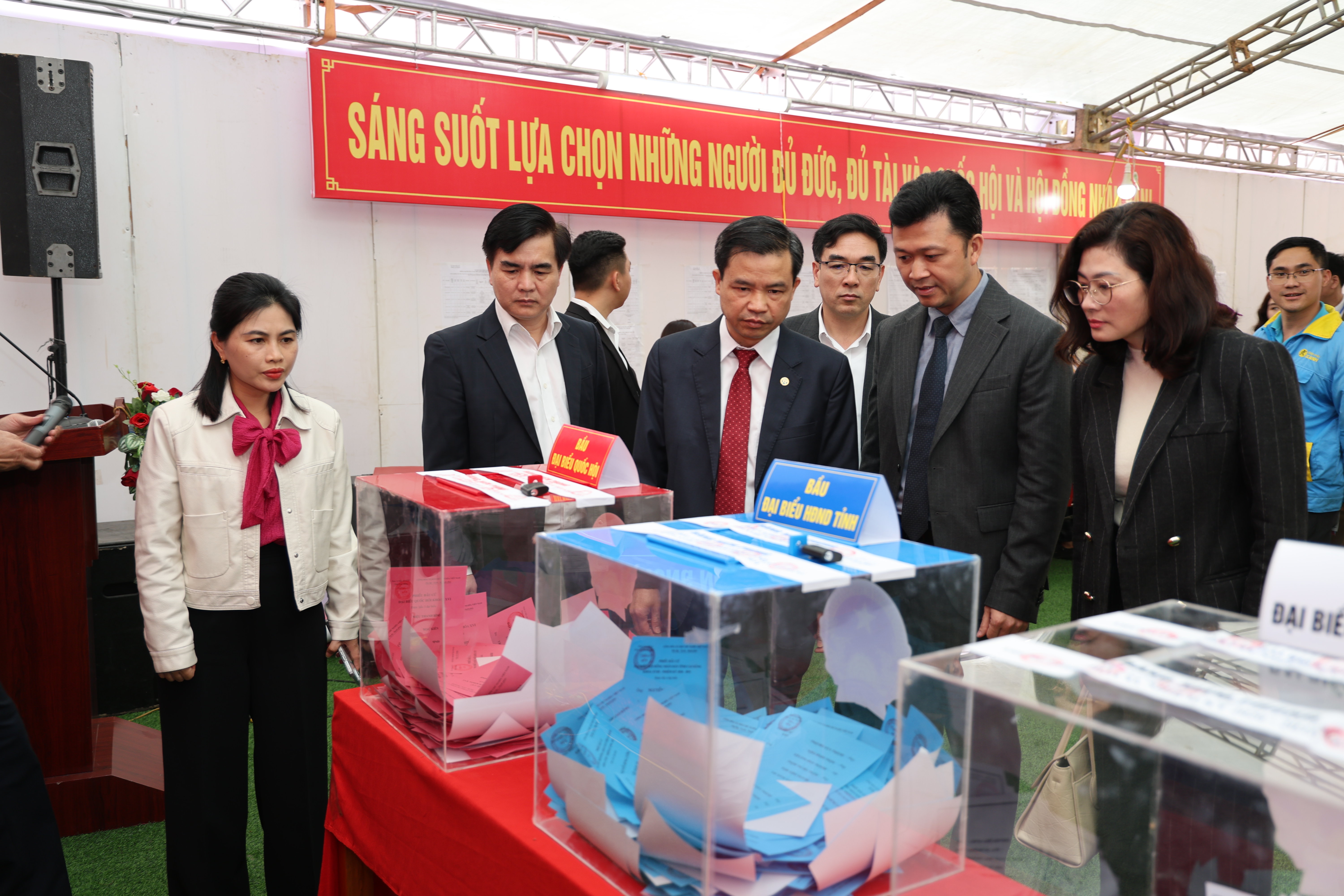 Ngay sau lễ khai mạc, Phó Bí thư Thường trực Tỉnh ủy, Chủ tịch HĐND tỉnh Bế Thanh Tịnh đã bỏ lá phiếu đầu tiên của khu vực bầu cử. Đồng thời, đông đảo cử tri đã bỏ phiếu, thực hiện quyền và nghĩa vụ công dân của mình.