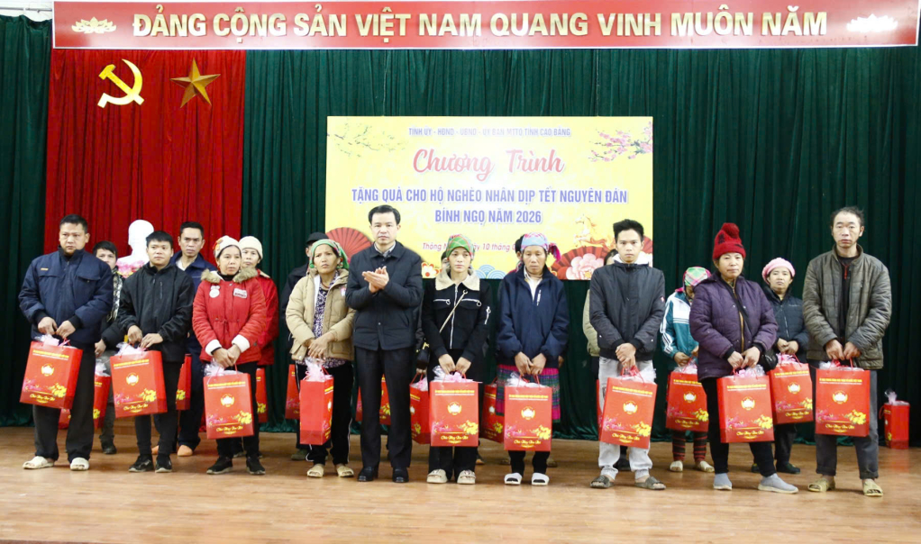 Nhân dịp này, đoàn công tác trao tặng 100 suất quà tết của Ủy ban Trung ương MTTQ Việt Nam cho 100 hộ nghèo có hoàn cảnh khó khăn của 3 xã. Trong đó, xã Thông Nông 40 suất quà, xã Thanh Long 30 suất quà và Cần Yên 30 suất quà. Tổng trị giá 230 triệu đồng. Tặng quà của Tỉnh ủy, HĐND, UBND, Ủy ban MTTQ tỉnh cho cấp ủy, chính quyền 3 xã.