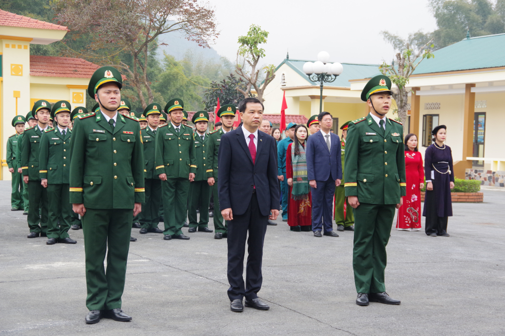 Trong không khí thiêng liêng của ngày đầu năm mới, đoàn công tác của tỉnh cùng cán bộ, chiến sĩ Đồn Biên phòng Đàm Thủy long trọng tổ chức Lễ chào cờ đầu năm mới. Toàn thể đại biểu, cán bộ, chiến sĩ đứng nghiêm, đồng thanh hát Quốc ca, thể hiện niềm tự hào và trách nhiệm của người lính nơi phên dậu Tổ quốc.