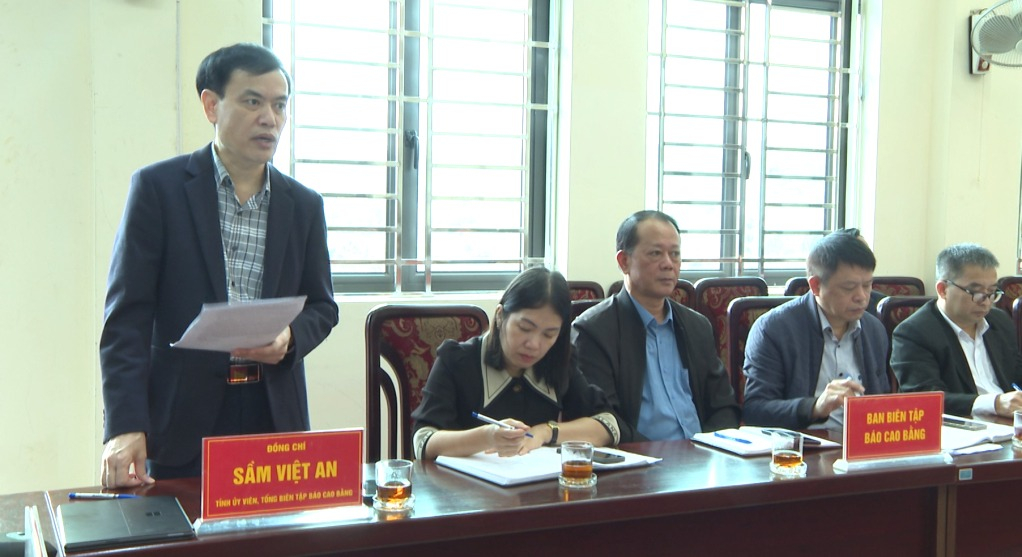 Tổng Biên tập Báo Cao Bằng Sầm Việt An phát biểu tại cuộc họp.