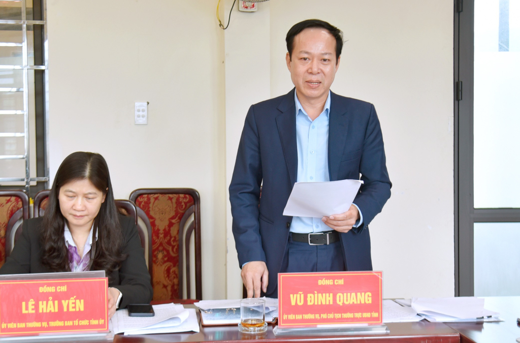 Phó Chủ tịch Thường trực UBND tỉnh Vũ Đình Quang phát biểu tại cuộc họp.