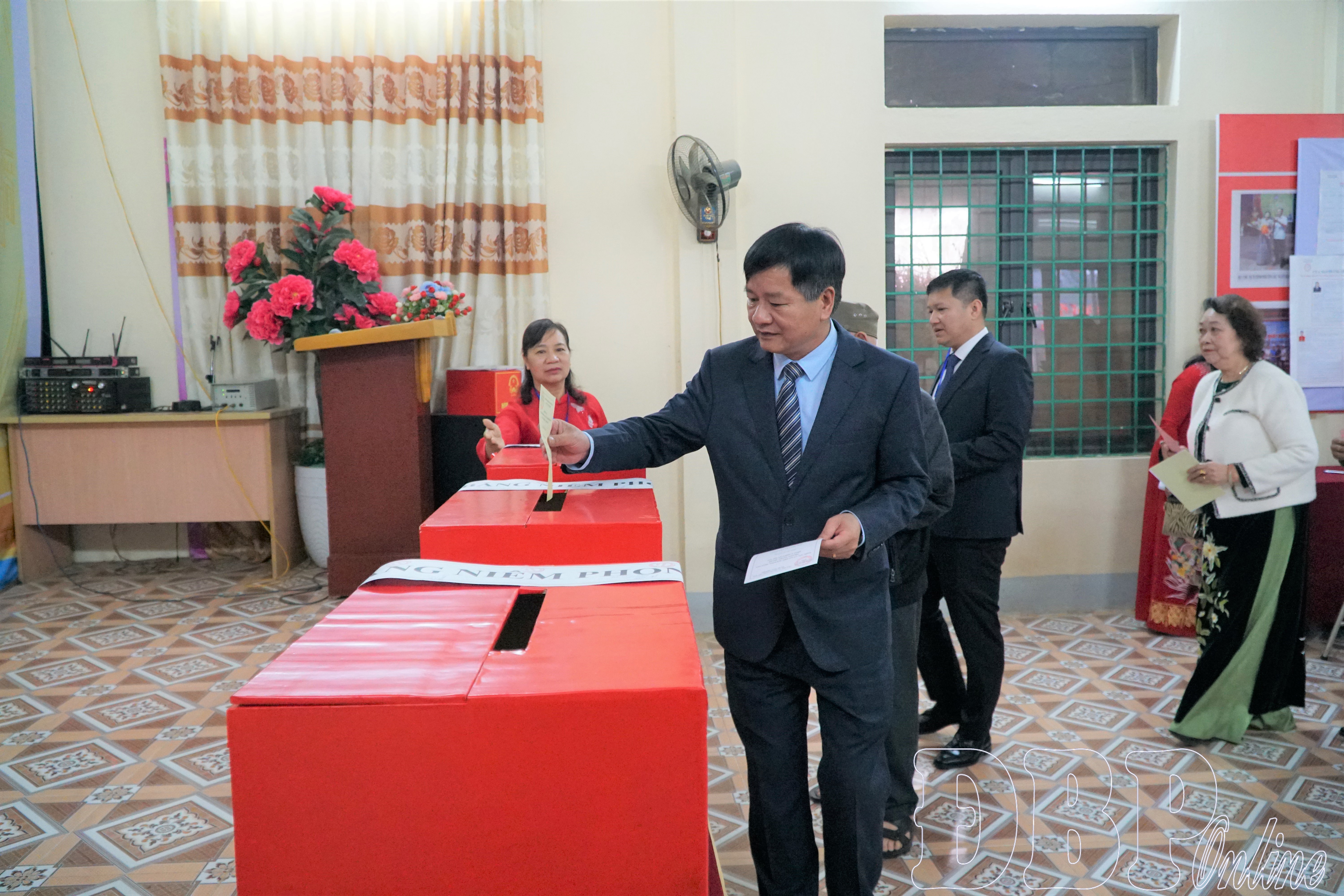 Tham dự lễ khai mạc tại khu vực bỏ phiếu số 6 có đồng chí Lê Thành Đô, Phó Bí thư Thường trực Tỉnh ủy, Chủ tịch HĐND tỉnh.