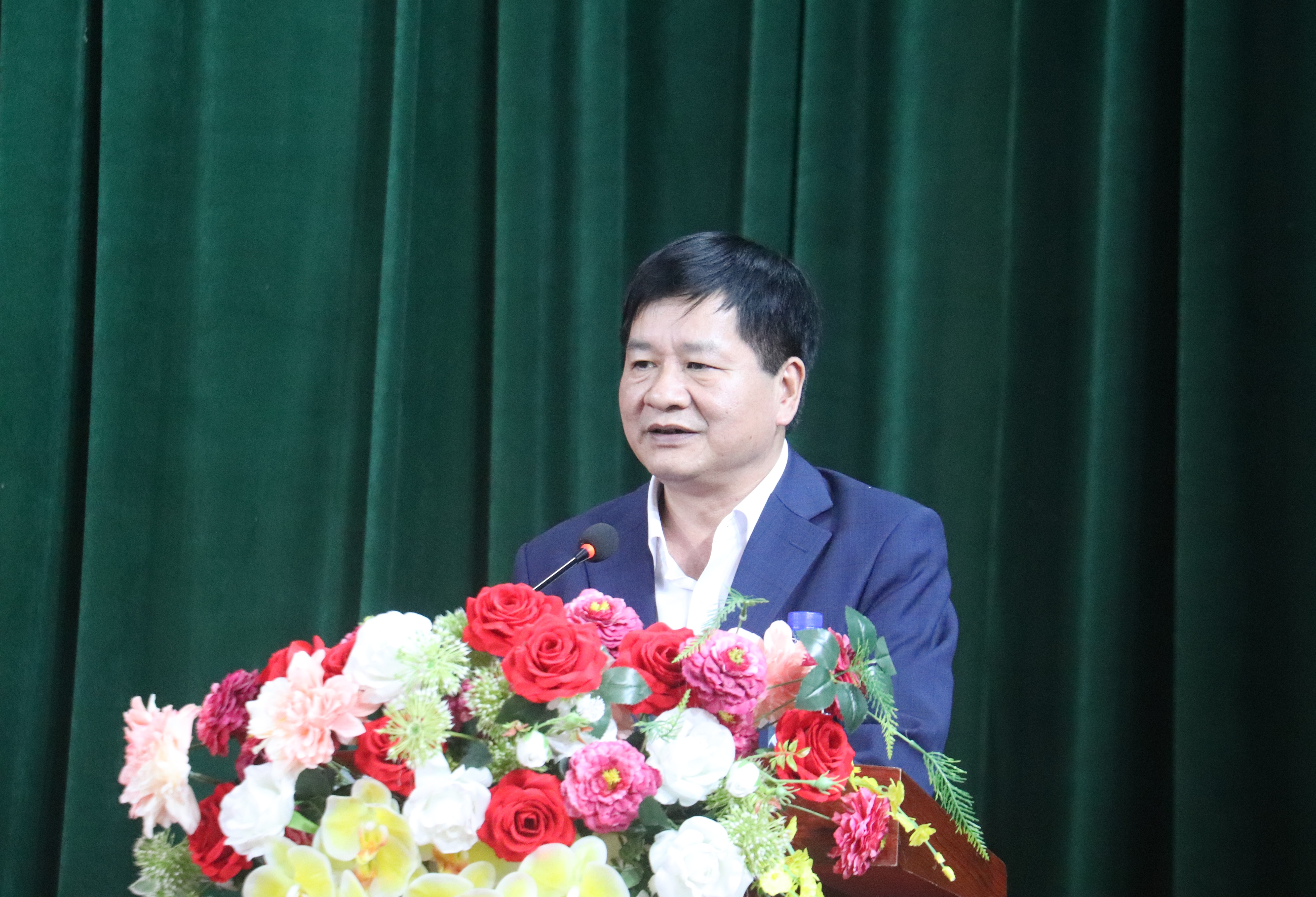 Phó Bí thư Thường trực Tỉnh ủy, Chủ tịch HĐND tỉnh Lê Thành Đô phát biểu tại chương trình tặng quà tết hộ nghèo, cận nghèo xã Mường Lạn.