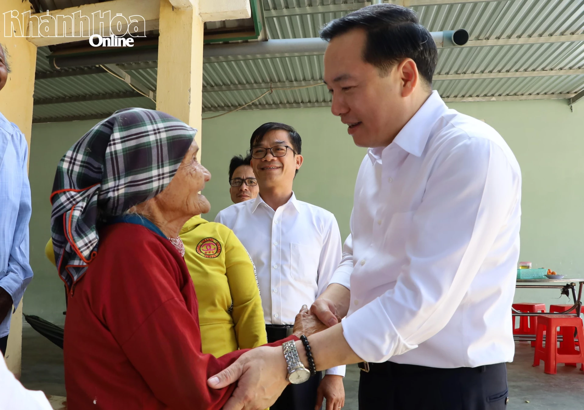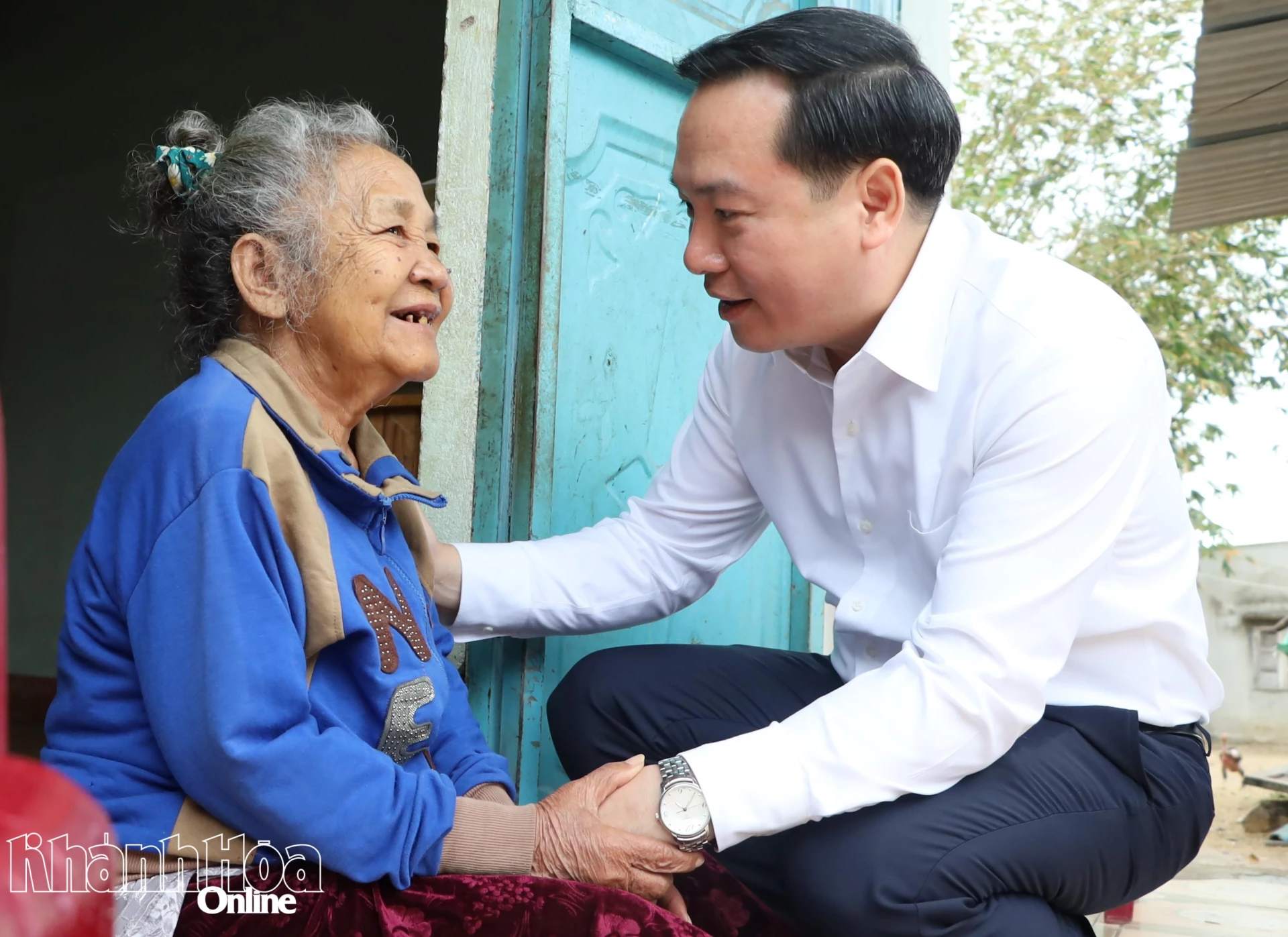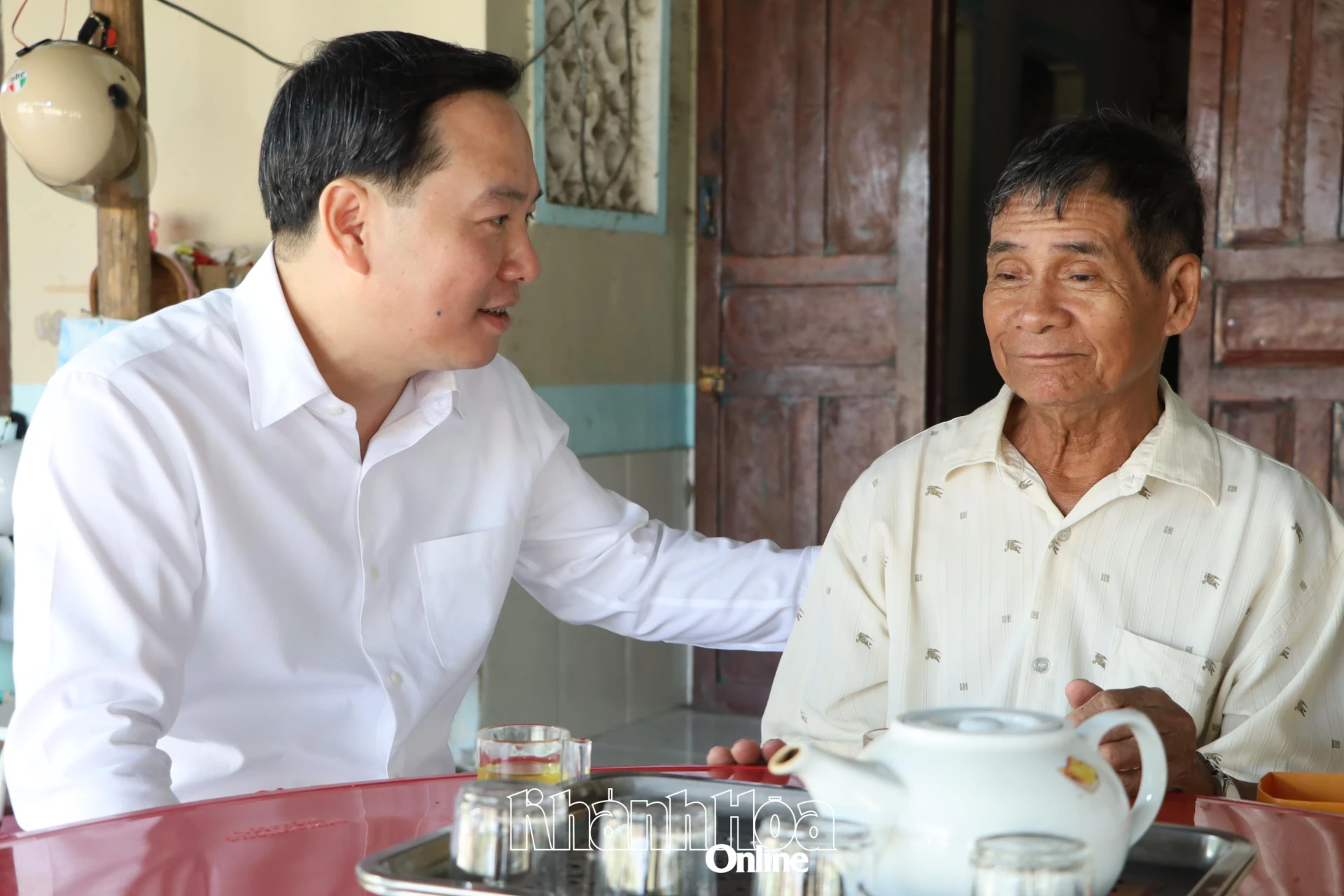 Đồng chí Hồ Xuân Trường ân cần thăm hỏi, chúc Tết ông Chamaleá Cường.