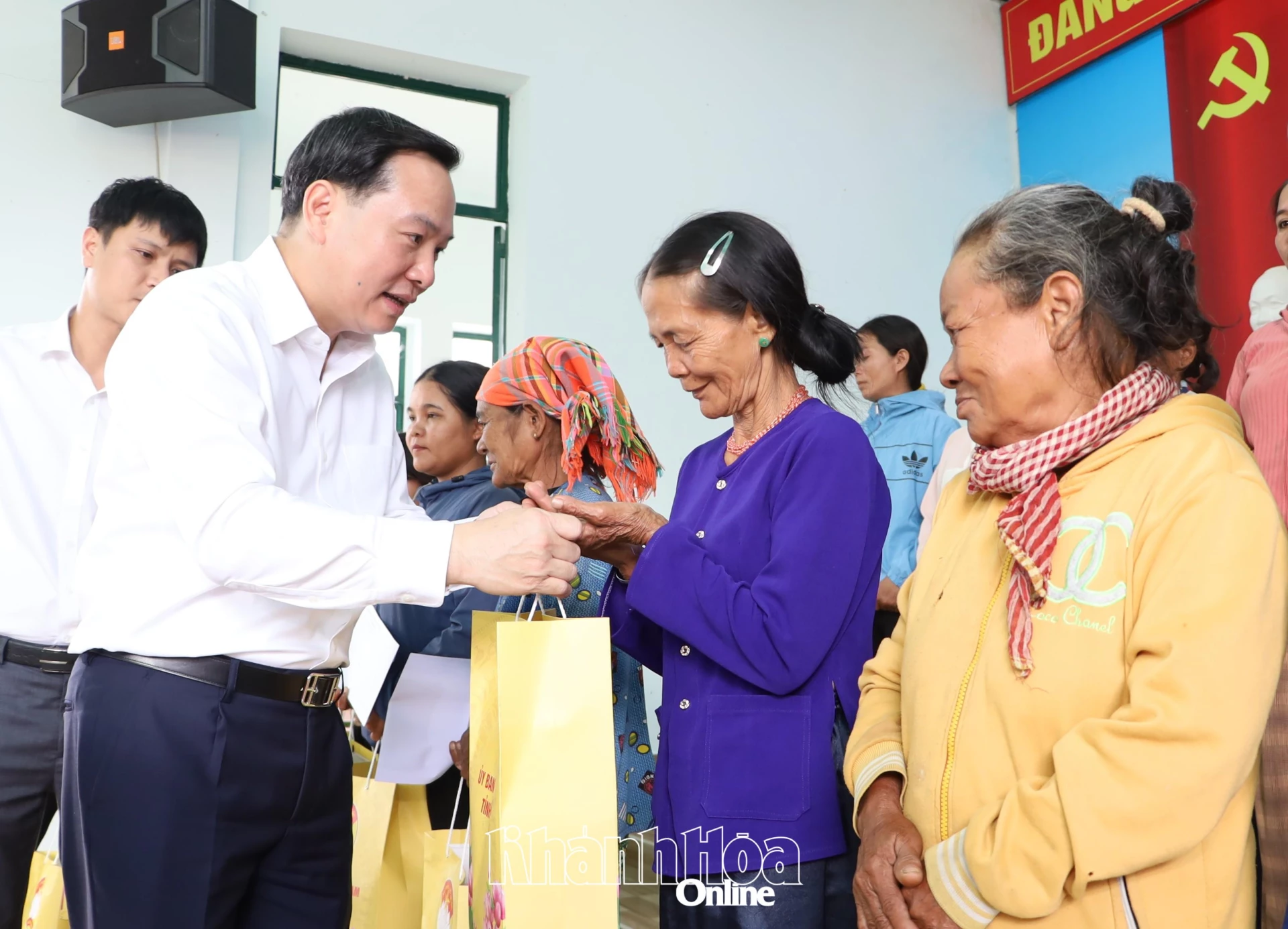 Đồng chí Hồ Xuân Trường cùng lãnh đạo địa phương tặng quà cho người dân xã Bác Ái.