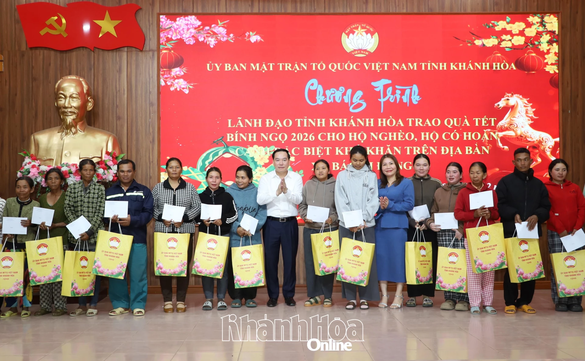 Phát biểu tại chương trình, đồng chí Hồ Xuân Trường ghi nhận và đánh giá cao nỗ lực, trách nhiệm của các cấp ủy, chính quyền, MTTQ và các đoàn thể trong công tác chăm lo Tết cho Nhân dân trên địa bàn, đặc biệt đối với các gia đình chính sách, hộ nghèo và đối tượng yếu thế. Đồng chí nhấn mạnh, việc chăm lo đời sống vật chất và tinh thần cho Nhân dân mỗi dịp Tết đến, xuân về là nhiệm vụ chính trị quan trọng, thể hiện rõ tư tưởng “lấy dân làm gốc” và trách nhiệm, tình cảm, đạo lý “Uống nước nhớ nguồn” của Đảng, Nhà nước và toàn xã hội. Phó Bí thư Thường trực Tỉnh ủy đề nghị trong thời gian tới, cấp ủy, chính quyền địa phương tiếp tục thực hiện đầy đủ, kịp thời các chế độ, chính sách an sinh xã hội, bảo đảm mọi người dân được đón Tết Nguyên đán trong không khí ấm áp, nghĩa tình, không để ai bị bỏ lại phía sau. Đồng thời, làm tốt công tác tuyên truyền kết quả, thành công của Đại hội đại biểu toàn quốc lần thứ XIV của Đảng; tăng cường tuyên truyền về cuộc bầu cử đại biểu Quốc hội và HĐND các cấp nhiệm kỳ 2026 - 2031; tổ chức các hoạt động mừng Đảng, mừng xuân; huy động các nguồn lực xã hội để chăm lo đời sống Nhân dân, nhất là hộ nghèo, hộ khó khăn và gia đình chính sách. Đồng chí Phó Bí thư Thường trực Tỉnh ủy mong muốn bà con Nhân dân tiếp tục đoàn kết, tương trợ lẫn nhau, nỗ lực vươn lên trong lao động, sản xuất, phát triển kinh tế, ổn định cuộc sống.