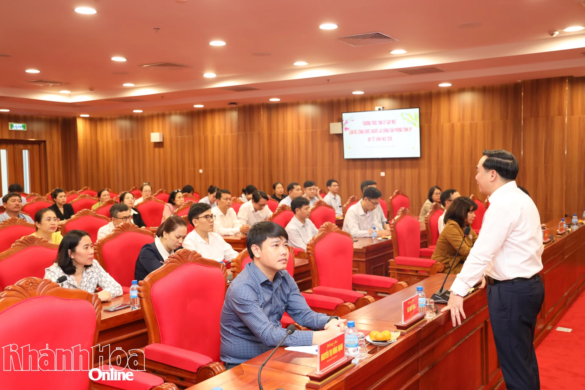 Tại buổi gặp mặt, đồng chí Hồ Xuân Trường đã thông tin những kết quả nổi bật trong phát triển kinh tế - xã hội của tỉnh năm 2025. Trong những kết quả chung đó, có sự đóng góp của tập thể cán bộ, công chức, người lao động Văn phòng Tỉnh ủy. Đồng chí nhấn mạnh, trong năm 2026, nhiệm vụ sẽ nặng nề hơn, yêu cầu cao hơn, đòi hỏi tập thể Văn phòng Tỉnh ủy phải nỗ lực hơn, mỗi cá nhân phải tự nâng cao năng lực, trau dồi chuyên môn nghiệp vụ để đáp ứng yêu cầu đặt ra.