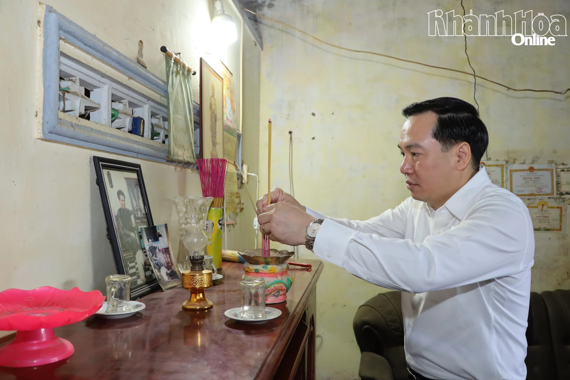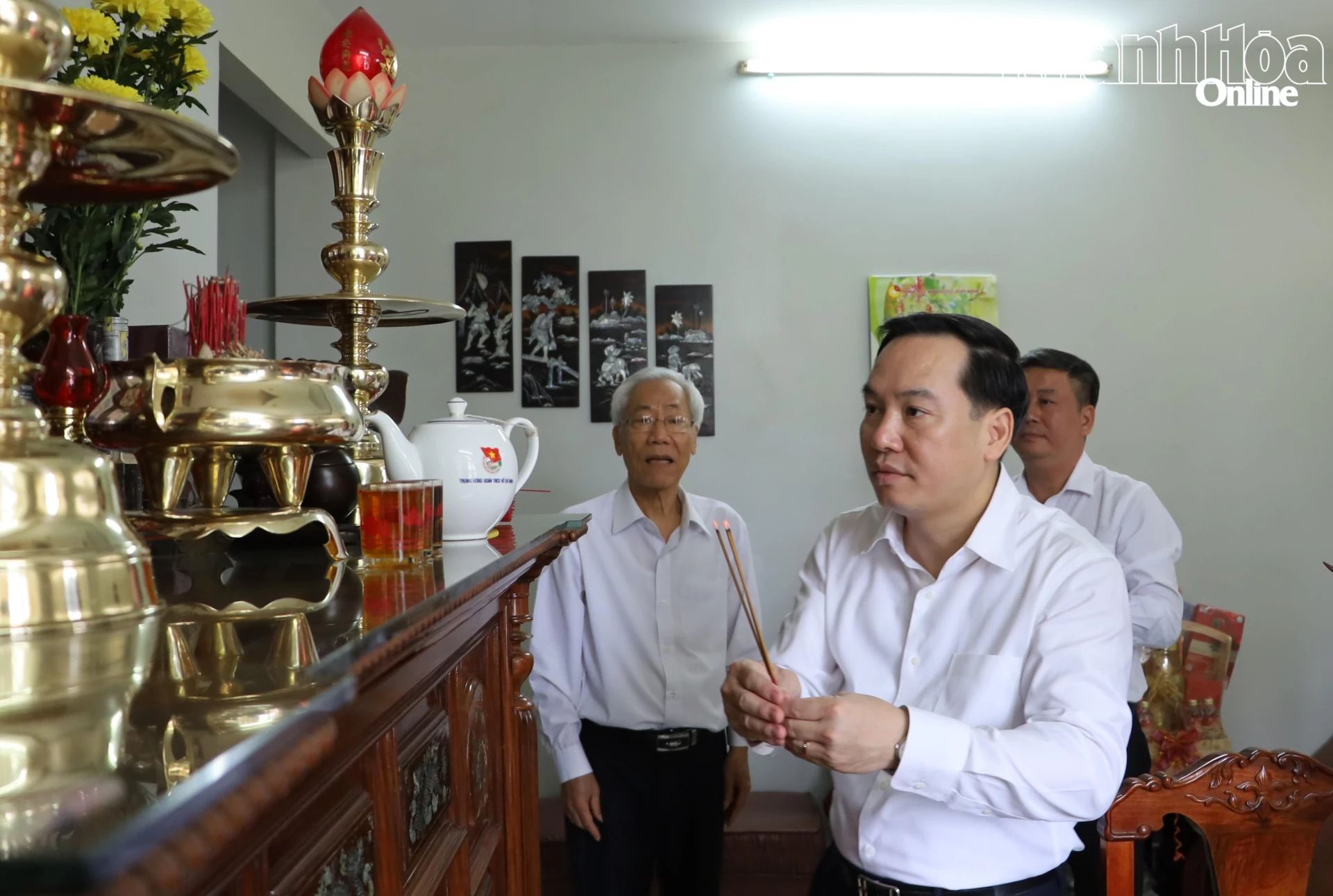 Đồng chí Hồ Xuân Trường thắp hương tưởng nhớ đồng chí Nguyễn Đức Thành là thân sinh đồng chí Nguyễn Đức Dũng.