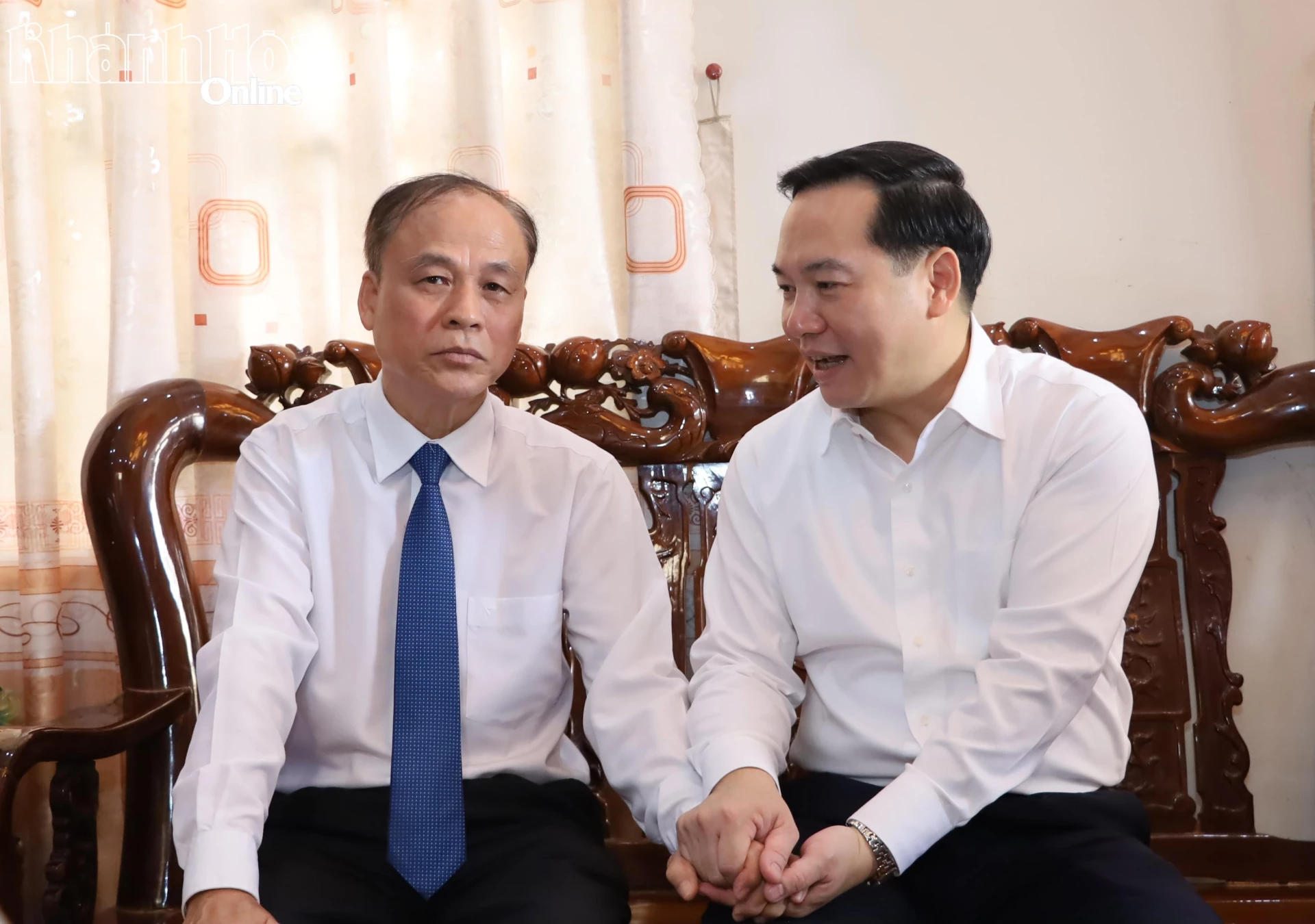 Đồng chí Hồ Xuân Trường thăm hỏi đồng chí Nguyễn Đức Dũng.