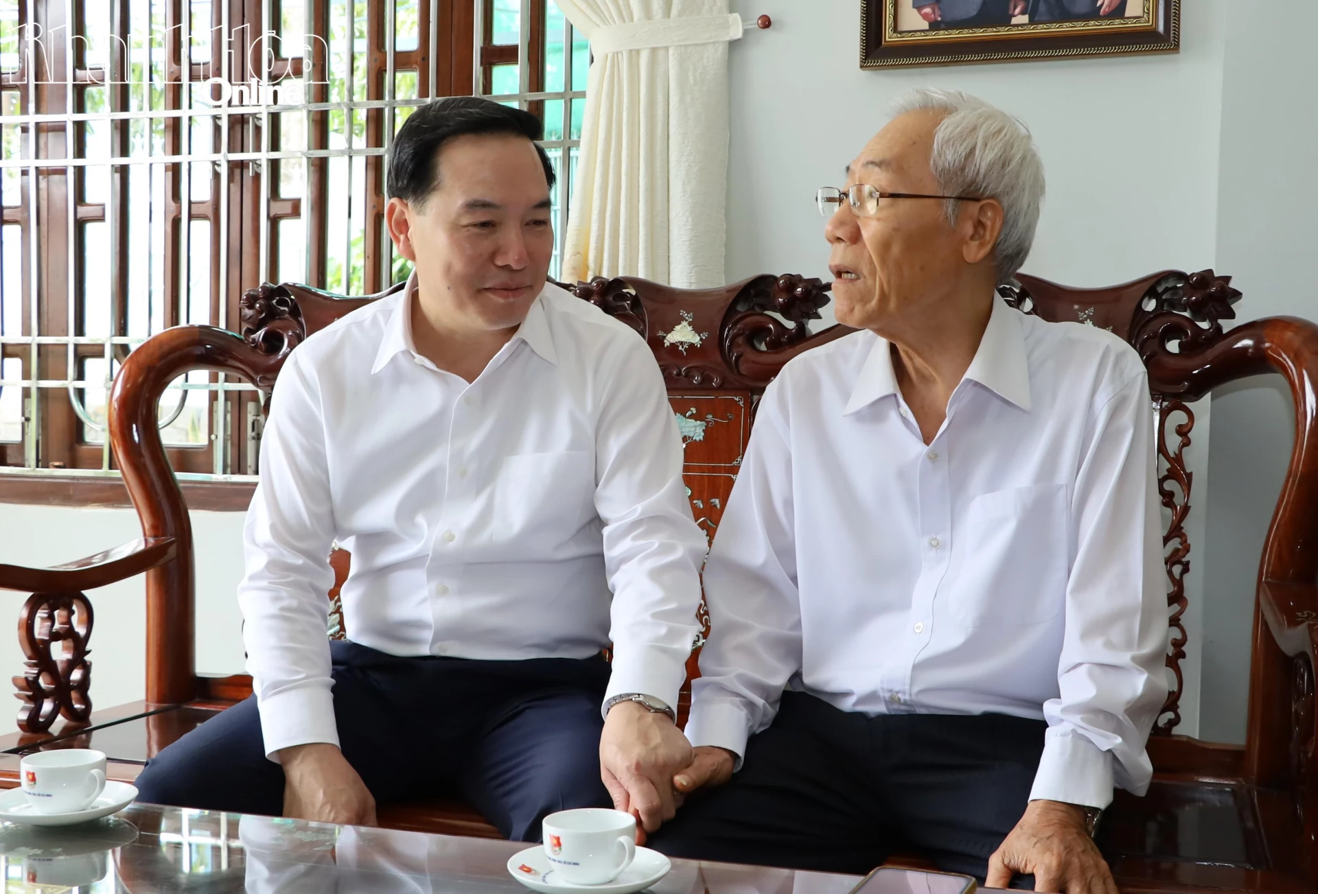 Đồng chí Hồ Xuân Trường thăm hỏi đồng chí Nguyễn Bắc Việt.