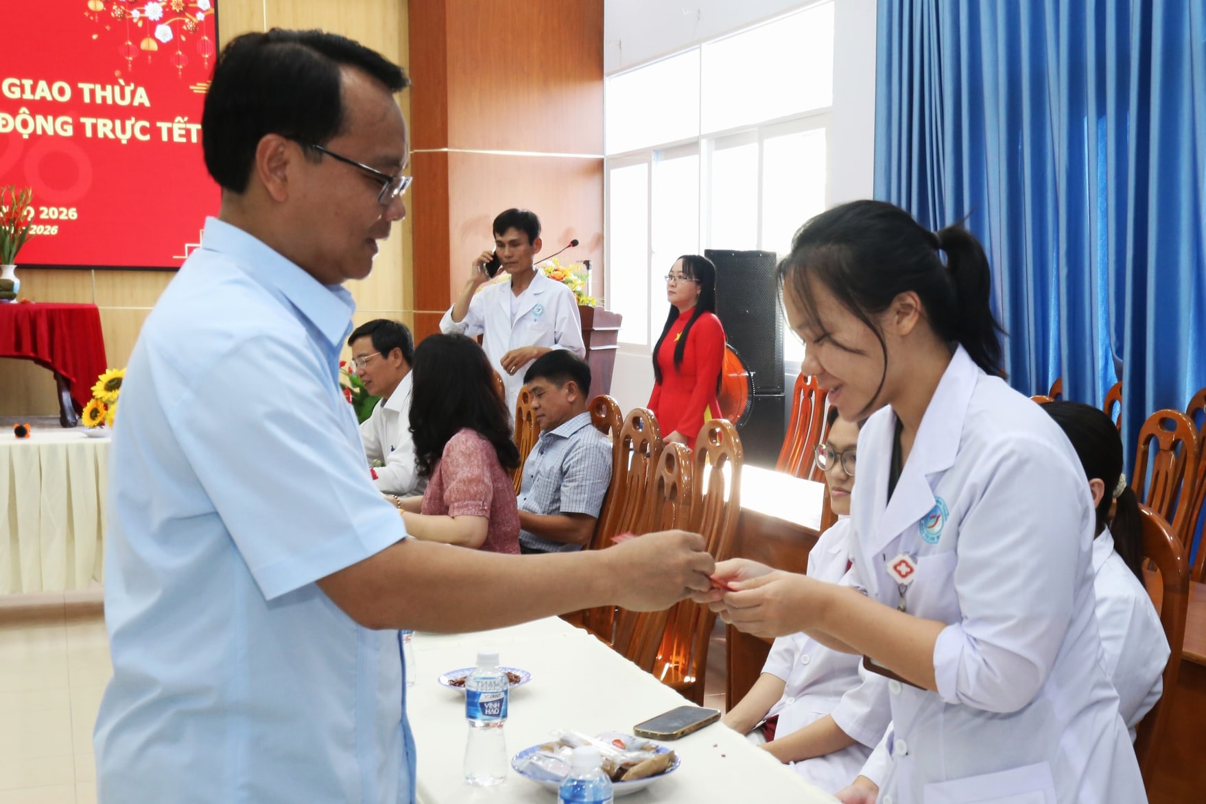 Đồng chí Đặng Hồng Sỹ, Phó Bí thư Thường trực Tỉnh ủy Lâm Đồng tặng quà chúc Tết cán bộ, y, bác sĩ, nhân viên y tế trực đêm giao thừa