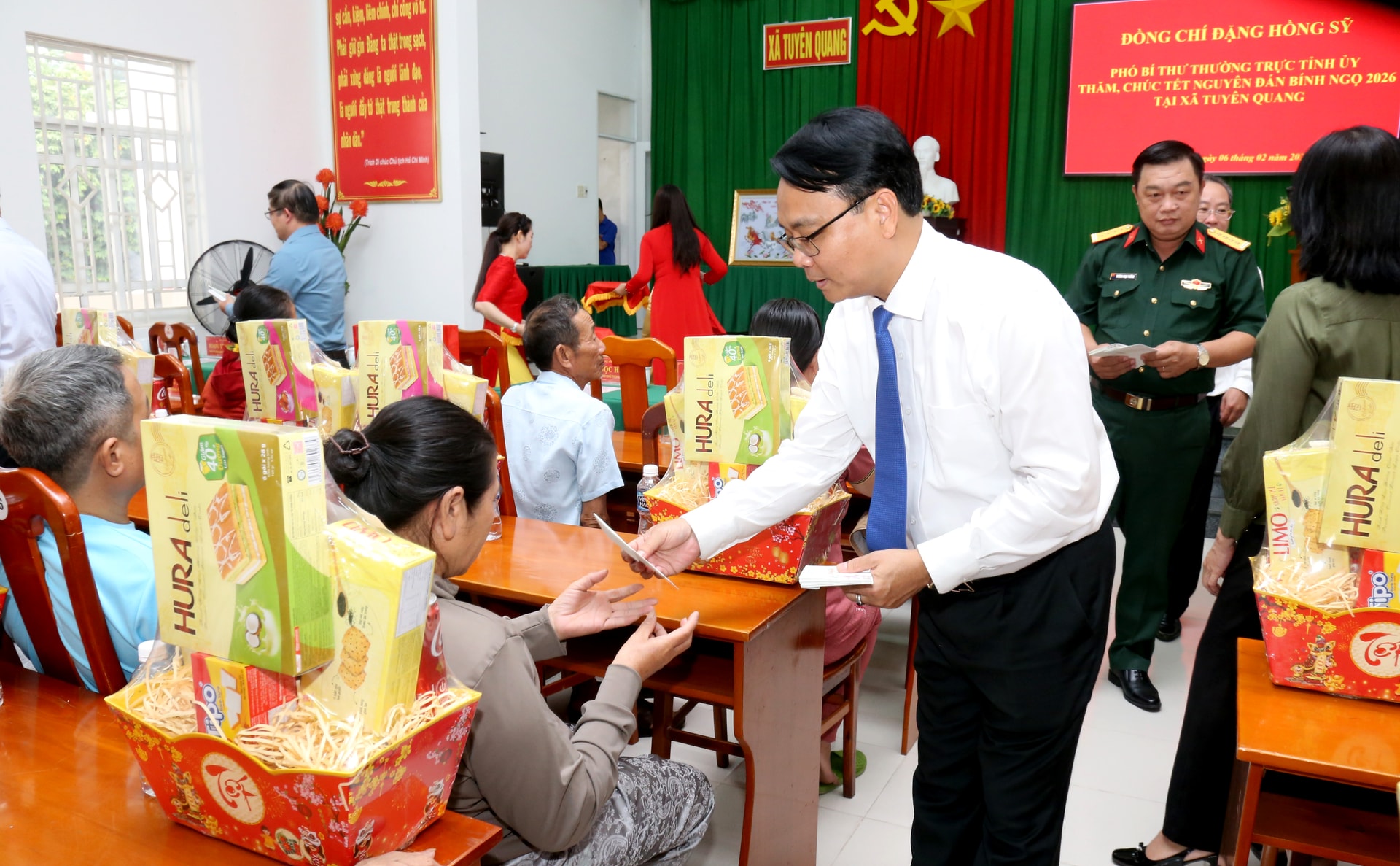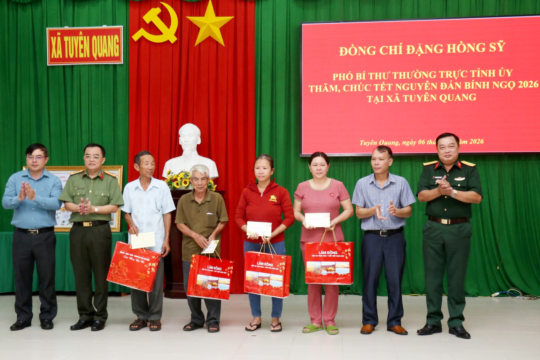 Nhân dịp Tết cổ truyền của dân tộc, đồng chí Đặng Hồng Sỹ gửi lời chúc mừng năm mới tới các đối tượng người có công với cách mạng, người có uy tín trong đồng bào dân tộc thiểu số, cùng các hộ nghèo, hộ cận nghèo, hộ gia đình có hoàn cảnh khó khăn trên địa bàn xã Tuyên Quang.