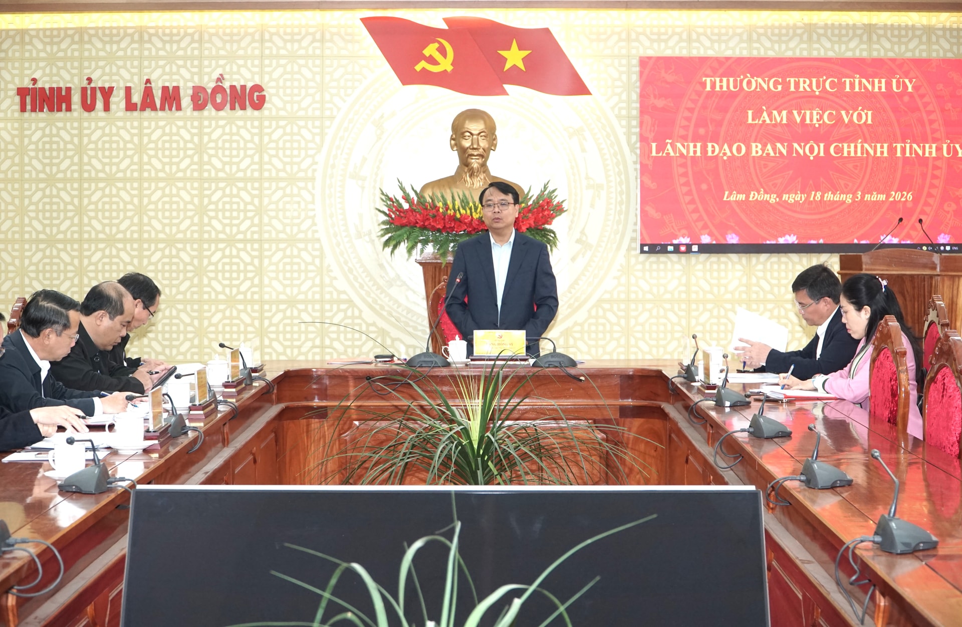 Phát biểu kết luận, đồng chí Đặng Hồng Sỹ, Phó Bí thư Thường trực Tỉnh ủy Lâm Đồng ghi nhận và đánh giá cao tinh thần chủ động, trách nhiệm của tập thể lãnh đạo, cán bộ, công chức Ban Nội chính Tỉnh ủy trong thực hiện nhiệm vụ quý I/2026.