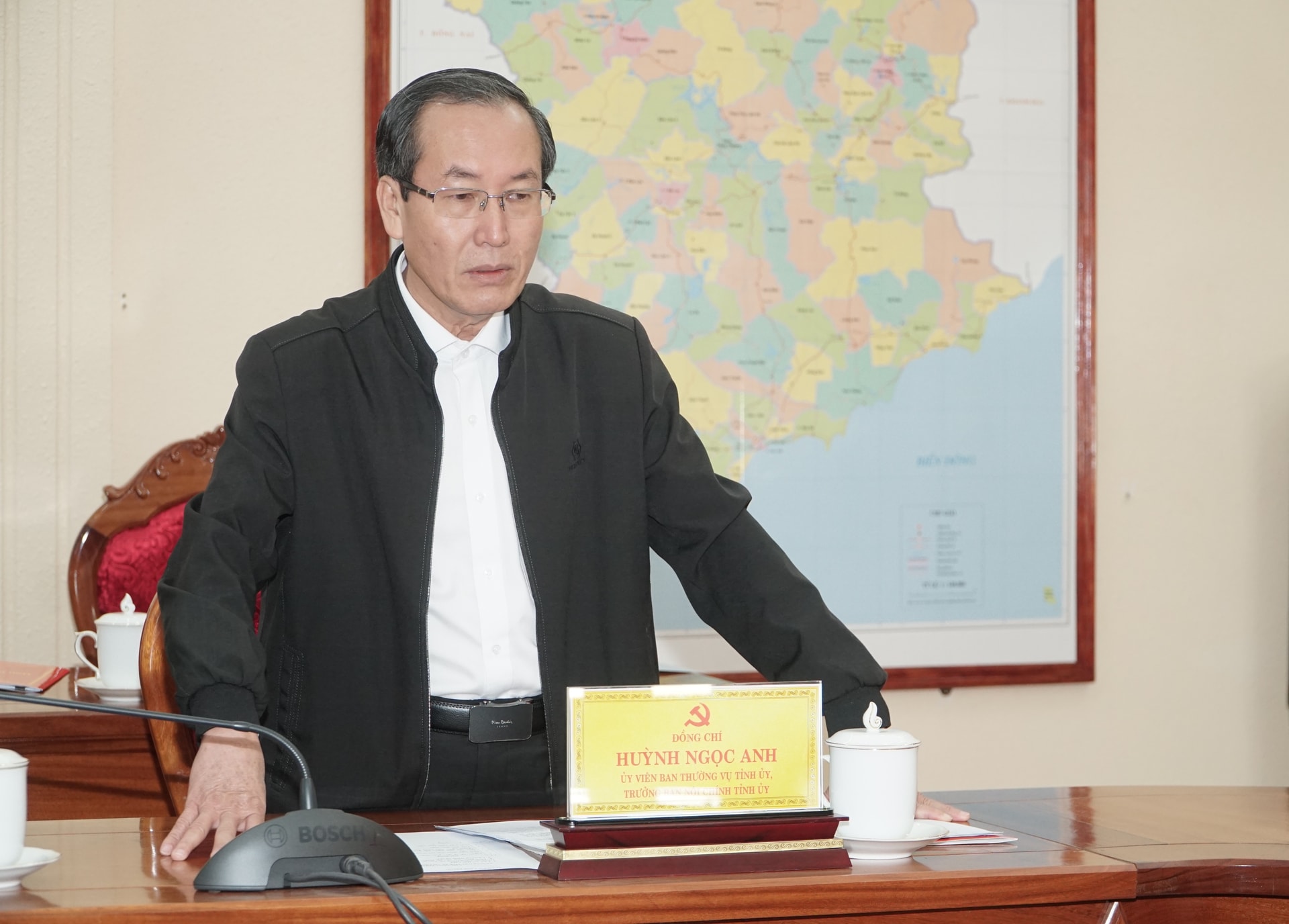 Đồng chí Huỳnh Ngọc Anh, Ủy viên Ban Thường vụ Tỉnh ủy, Trưởng Ban Nội chính Tỉnh ủy báo cáo tại buổi làm việc