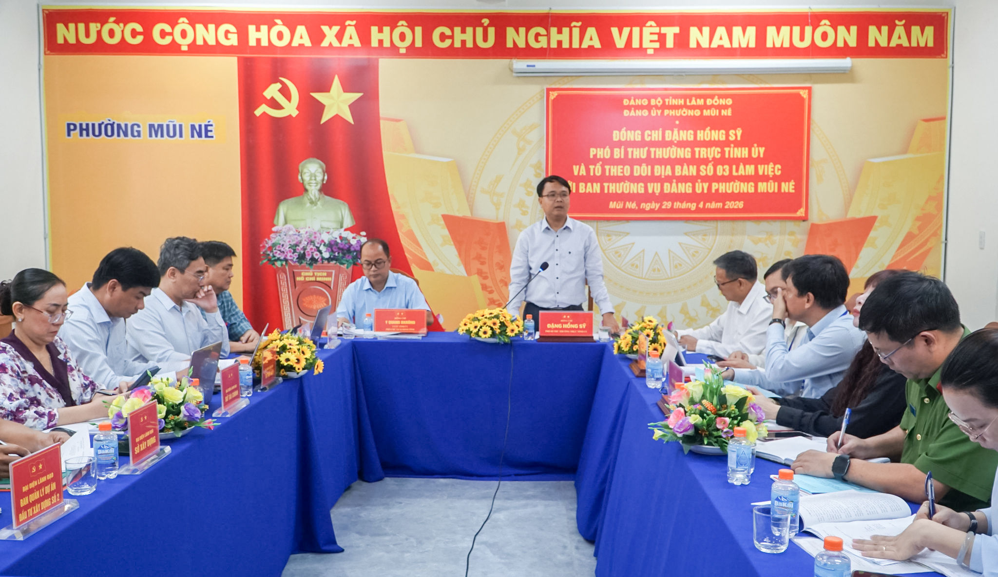 Phát biểu tại buổi làm việc, Phó Bí thư Thường trực Tỉnh ủy Đặng Hồng Sỹ ghi nhận, đánh giá cao tinh thần đoàn kết, nỗ lực và những kết quả đạt được của phường Mũi Né. Đồng chí Đặng Hồng Sỹ cũng chỉ ra một số tồn tại, hạn chế, trong đó đáng lưu ý là tiến độ giải ngân đầu tư công năm 2026 chưa đạt yêu cầu.