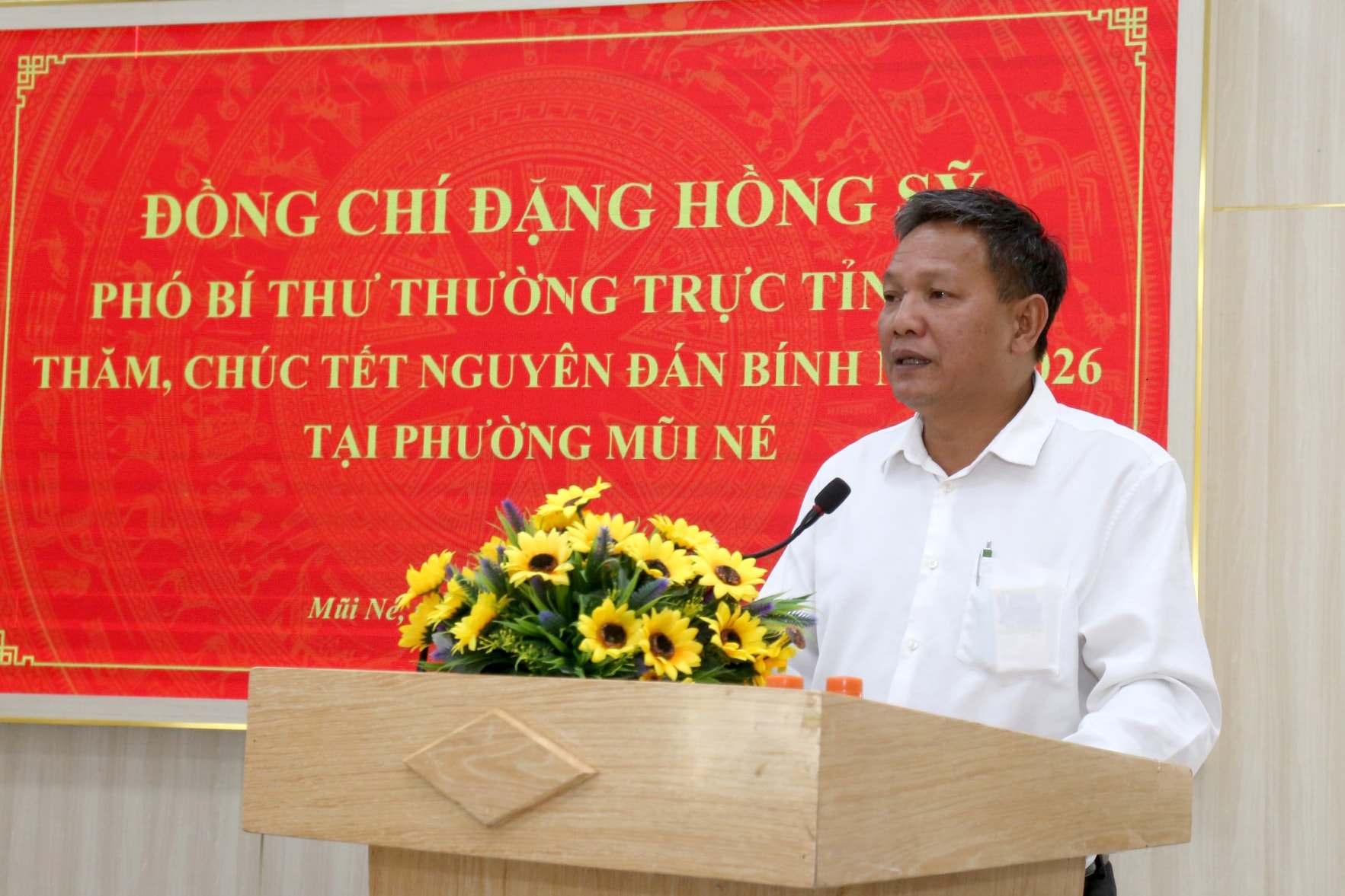 Nhân dịp Tết Cổ truyền của dân tộc, đồng chí Đặng Hồng Sỹ gửi lời chúc mừng năm mới tới các đối tượng người có công với cách mạng, người có uy tín trong đồng bào dân tộc thiểu số, cùng các hộ nghèo, hộ cận nghèo, hộ gia đình có hoàn cảnh khó khăn trên địa bàn phường Mũi Né. Đồng chí mong muốn các gia đình tiếp tục phát huy truyền thống cách mạng, đoàn kết, nỗ lực vươn lên trong cuộc sống, tích cực tham gia các phong trào thi đua yêu nước tại địa phương.