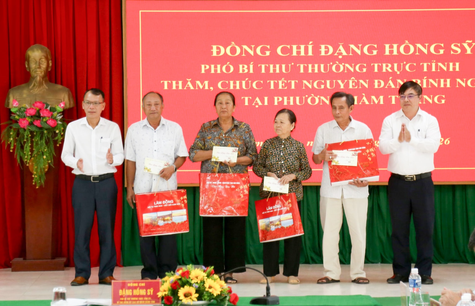 Nhân dịp Tết cổ truyền của dân tộc, đồng chí Đặng Hồng Sỹ gửi lời chúc mừng năm mới tới các đối tượng người có công với cách mạng, người có uy tín trong đồng bào dân tộc thiểu số, cùng các hộ nghèo, hộ cận nghèo, hộ gia đình có hoàn cảnh khó khăn trên địa bàn phường Hàm Thắng.